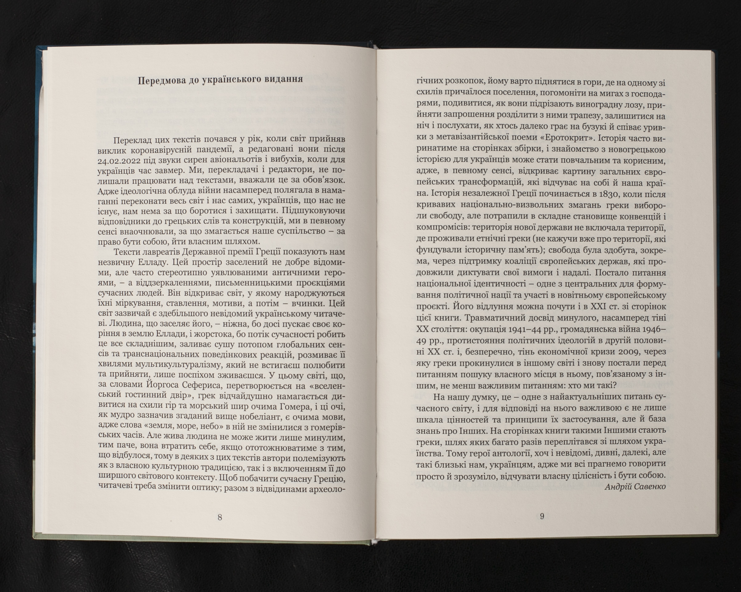 Видання представляє твори лауреатів Державної літературної премії Греції 2010-2018 рр. у номінації “оповідання/новела”. Ця збірка відкриває українському читачеві сучасну Грецію – країну, що долає економічні кризи та соціальні трансформації початку XXI ст. Через призму коротких оповідань автори створюють мозаїчний портрет суспільства, яке шукає свою ідентичність та надію на майбутнє в час глобальних викликів. Книга буде цікава читачам, які прагнуть пізнати сучасну Грецію поза межами її античної спадщини.