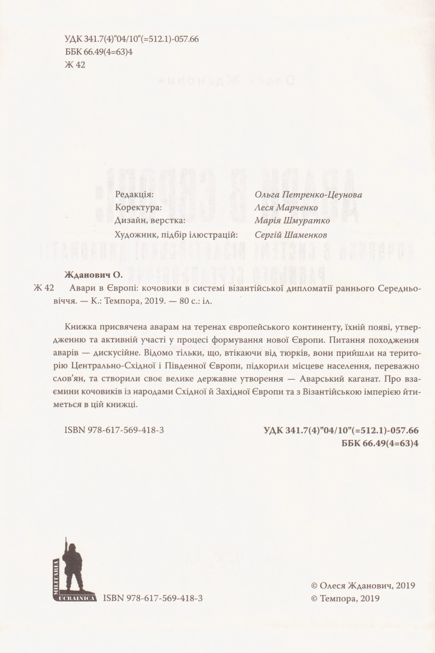 Головна Сучасні видання С4. За видавництвами С4.11. Темпора Авари в Європі: кочовики в системі візантійської дипломатії раннього Середньовіччя. Олеся Жданович
