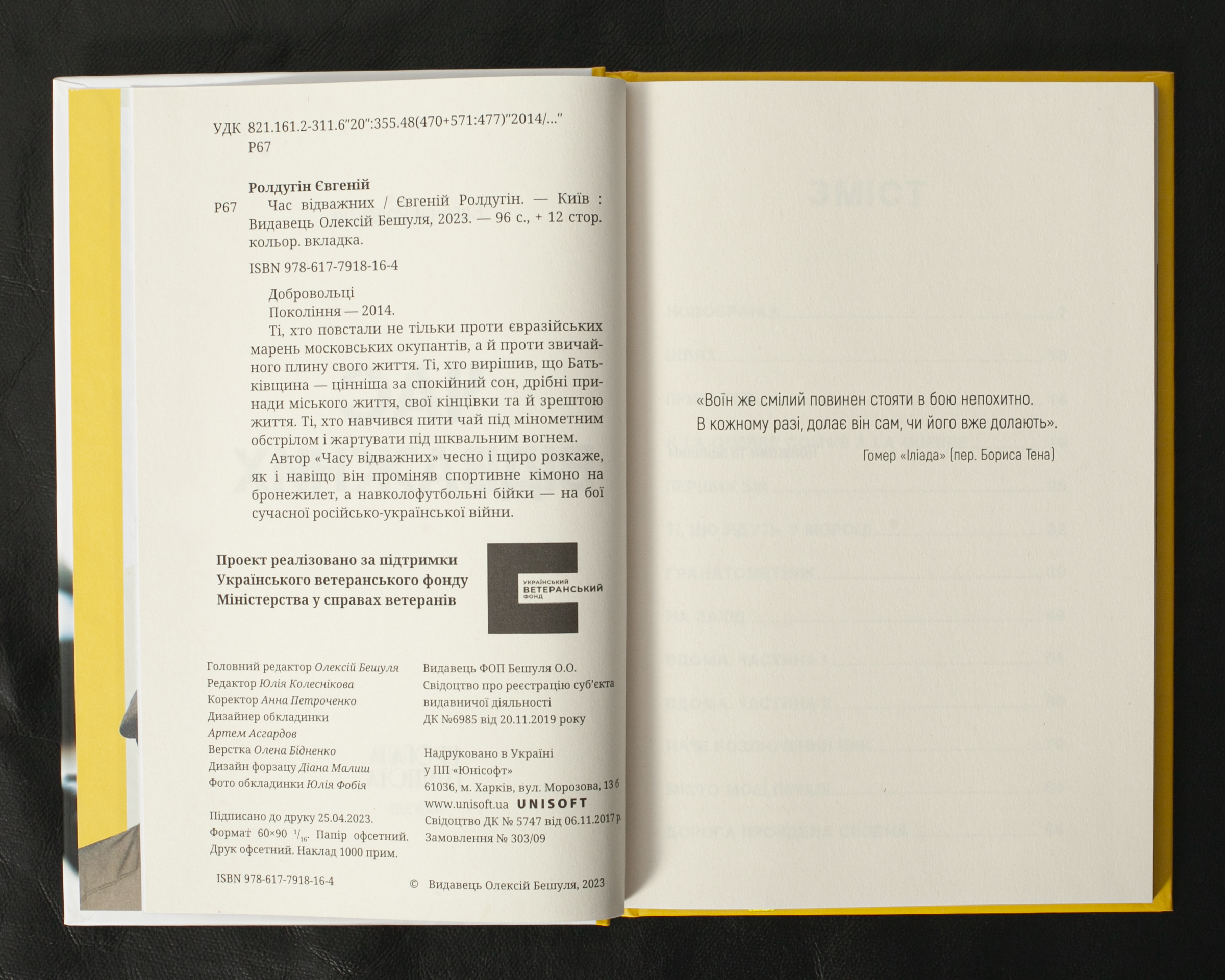 У своїй документальній книзі Євгеній Ролдугін розповідає особисту історію про те, як у 2014 р. він, як і багато інших українців, залишив мирне життя та став добровольцем. Автор щиро описує свою трансформацію зі спортсмена у воїна, ділиться фронтовими буднями, де під мінометними обстрілами та кулеметними чергами народжувалося нове покоління захисників України. Книга доповнена кольоровою фотовкладкою, яка візуально документує описані події.