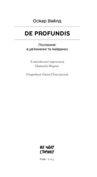 Головна Сучасні видання С4. За видавництвами С4.16. Ще одну сторінку (Ранок) De Profundis. Послання: в ув’язненні та кайданах /Оскар Вайлд/