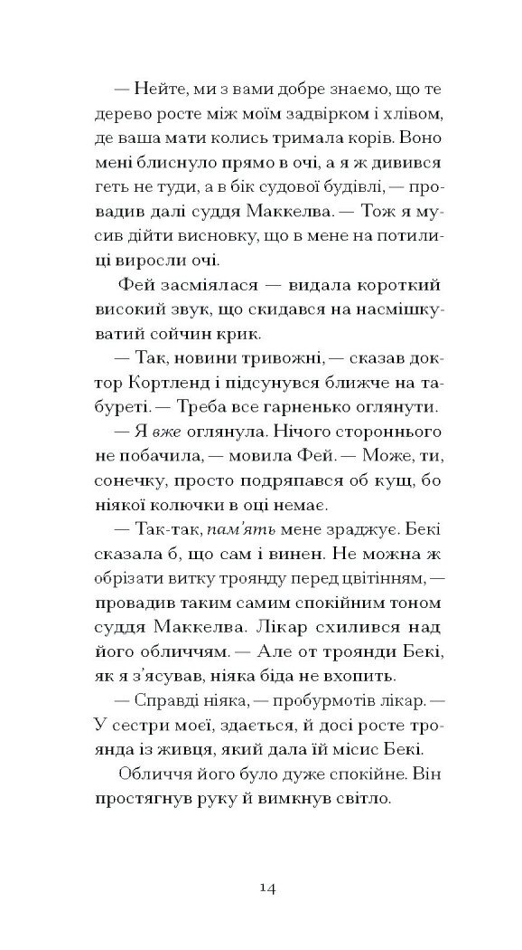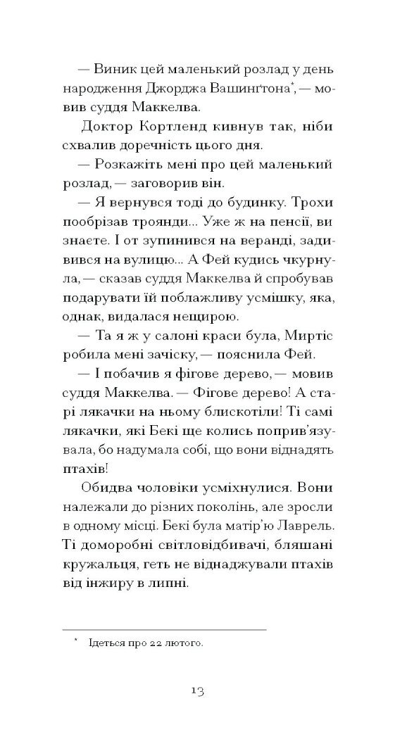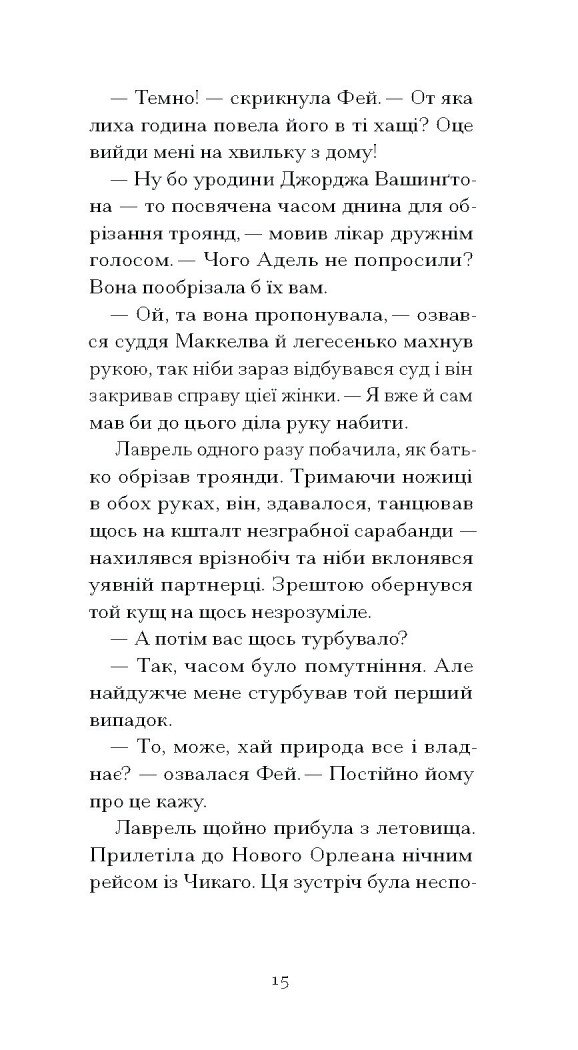 По смерті судді Маккелви спадок родини лишається на відкуп його другій дружині, легковажній матеріялістці Фей, на понад 30 років молодшій за спочилого в Бозі, та на плекання нещодавно овдовілій донці Лаврель, яка прагне лише зберегти пам’ять роду й традиції родини. Як зарадити собі після втрати, коли ти лишаєшся сам, а довкола лише лицеміри й позери? Чому замість боротися за спадщину, Лаврель вдається до порядкування в саду? Й невже чорний голкохвіст, який залетів до осиротілого будинку, і справді провіщає лихо?