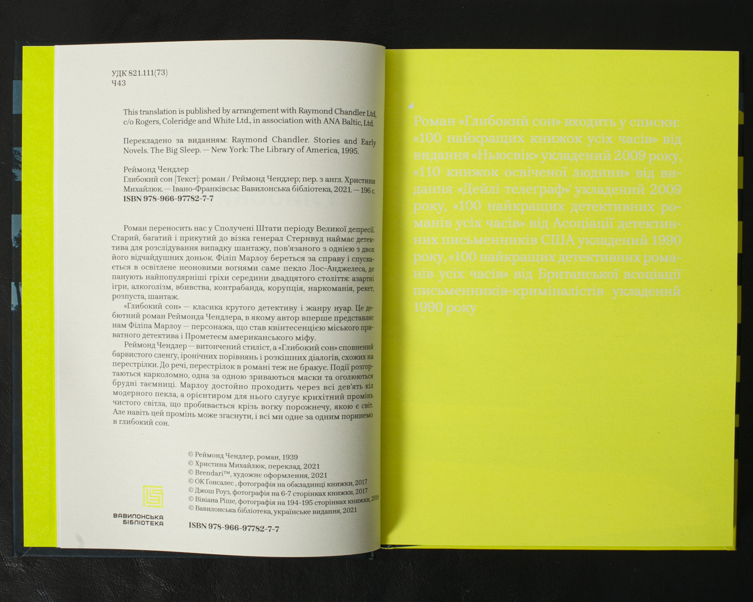 «Глибокий сон» – дебютний роман Реймонда Чендлера і класика крутого детективу та жанру нуар. Саме тут автор вперше представляє Філіпа Марлоу – персонажа, що став квінтесенцією міського приватного детектива і Прометеєм американського міфу.