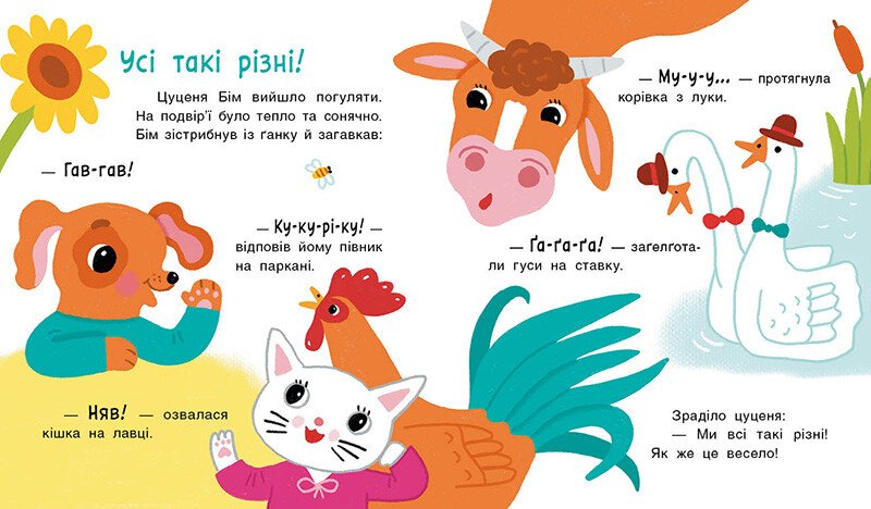 Книжка створена спеціально для наймолодших читачів: діток від 1 року. У ній зібрано короткі добрі історії, які можна прочитати всього за умовних сім хвилин, бо, як відомо, малюк в цьому віці ще недовго може тримати увагу. У цих оповідках кошенята, цуценята, лисенята, курчатка та інші звірята пізнають світ, граються, дивуються і вчаться дружити.