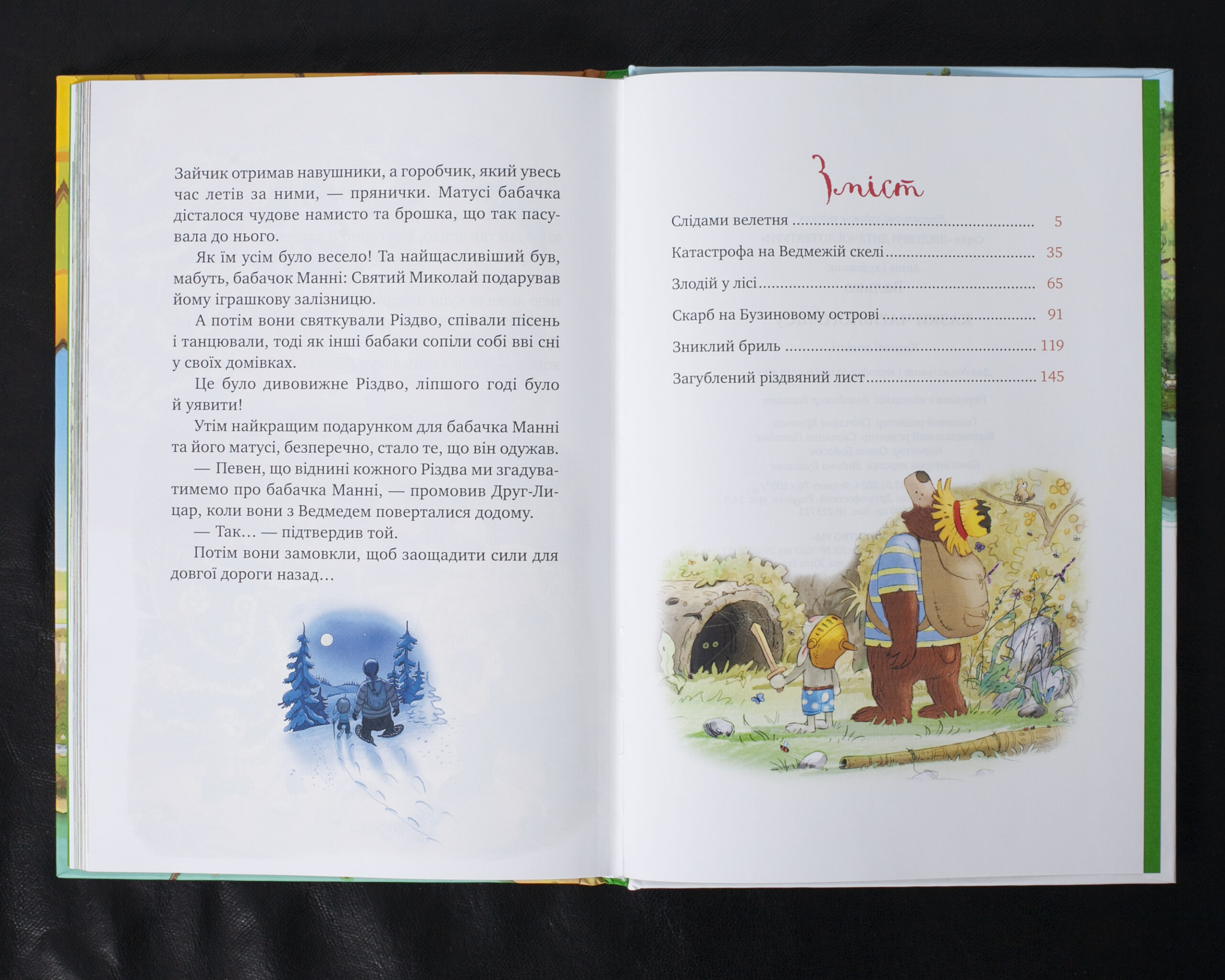 У цій збірці казкових повістей читачі познайомляться з двома незвичайними друзями – Маленьким Зайчиком та Бузиновим Ведмедем, які живуть у Чарівному лісі. Герої книги – сміливі та чуйні тварини, котрі завжди готові прийти на допомогу своїм друзям. На кожній сторінці на маленьких читачів чекають захопливі пригоди, які навчають дружби, взаємодопомоги та доброти. Книга чудово проілюстрована самим автором.