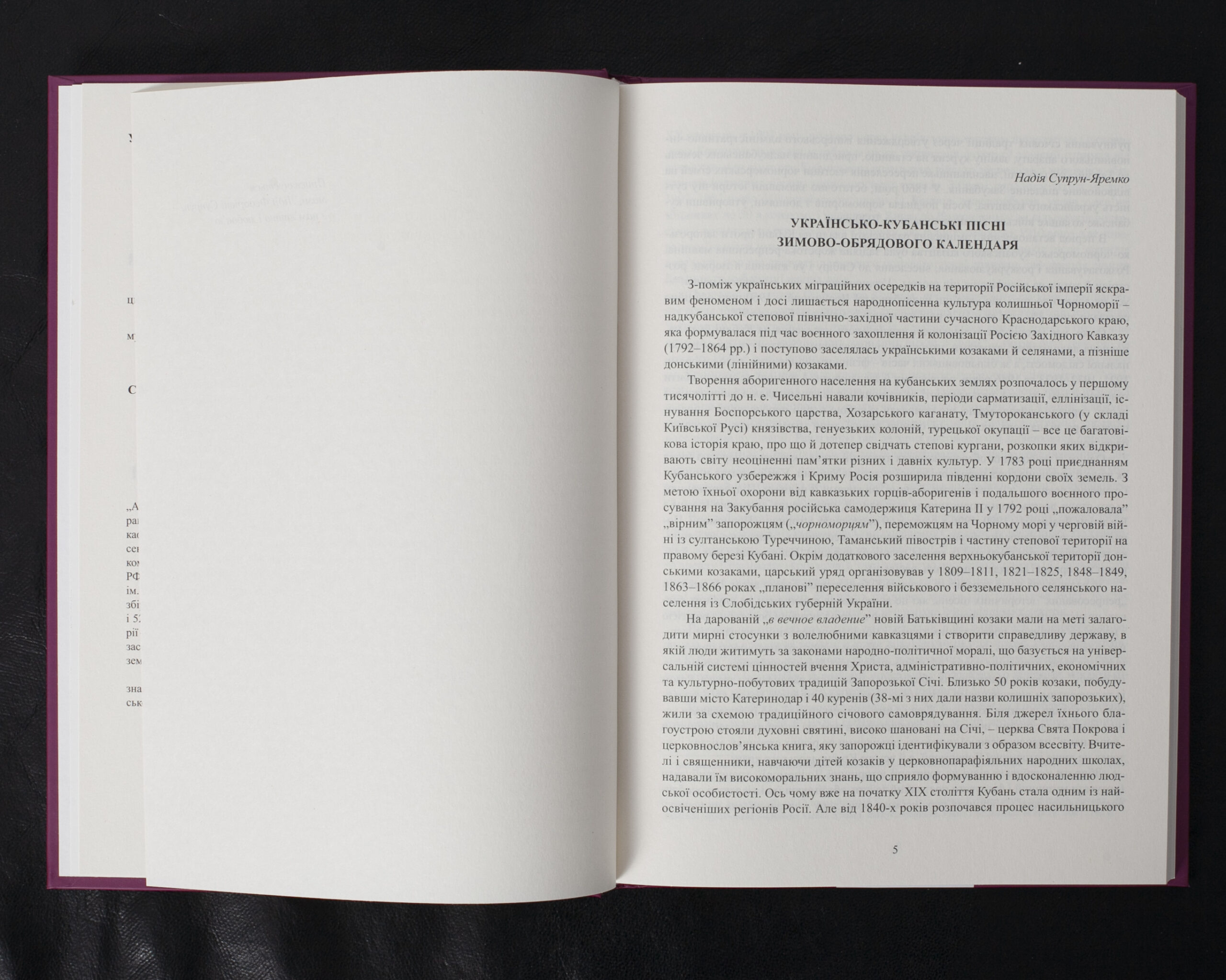 Фонографічний збірник представляє перший випуск серії “Антологія українських народних пісень Кубані”, що містить 121 зразок зимово-обрядового фольклору (69 колядок і 52 щедрівки). Матеріал зібрано у 49 населених пунктах історичної Чорноморії – території сучасного Краснодарського краю, яку з 1792 р. заселяли запорозькі козаки та українські селяни. Дослідження проведене докторкою мистецтвознавства Надією Супрун-Яремко, яка здійснила унікальну роботу з фіксації та транскрипції цих фольклорних творів.