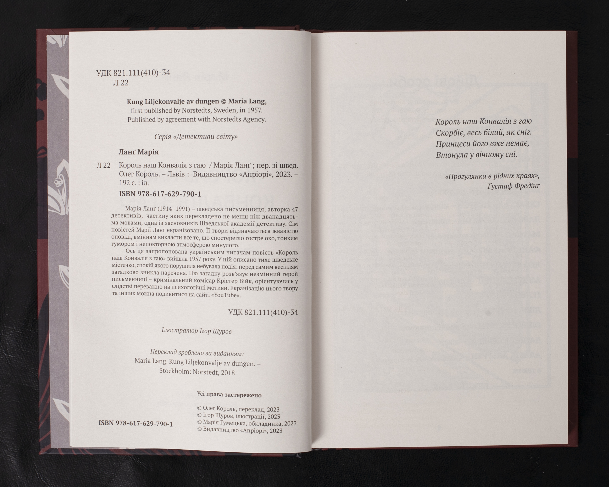 Головна Сучасні видання С4. За видавництвами С4.1. Апріорі Король наш Конвалія з гаю / Марія Ланґ / (Видання 2023 року)