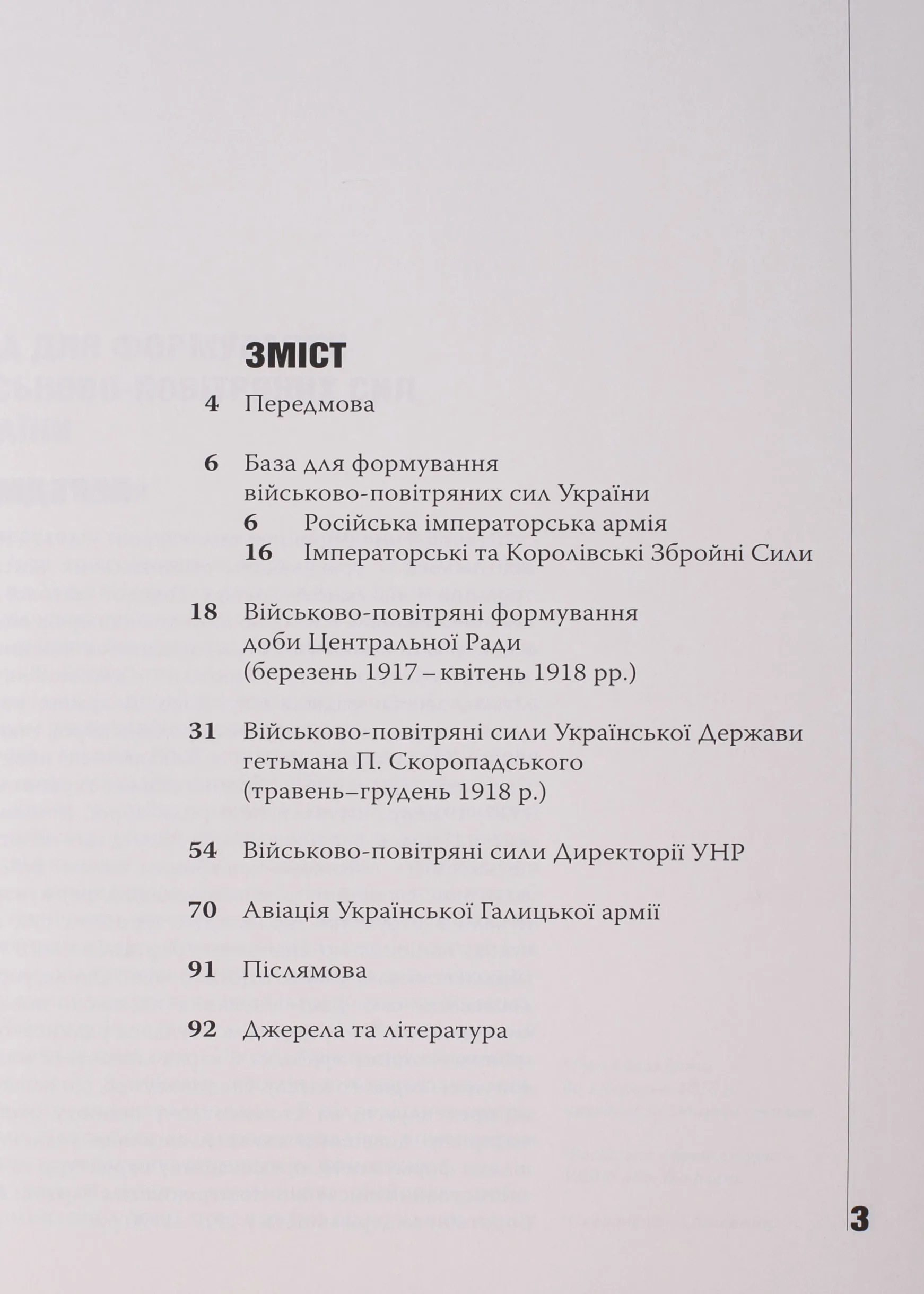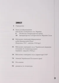 Книга присвячена одній з малодосліджених сторінок історії Перших визвольних змагань 1917–1920 рр. — зародженню та розвитку української військової авіації. На підґрунті архівних джерел автор ретельно дослідив стан національних військово-повітряних сил за часів Центральної Ради, Української Держави гетьмана П. Скоропадського, Армій УНР та УГА.