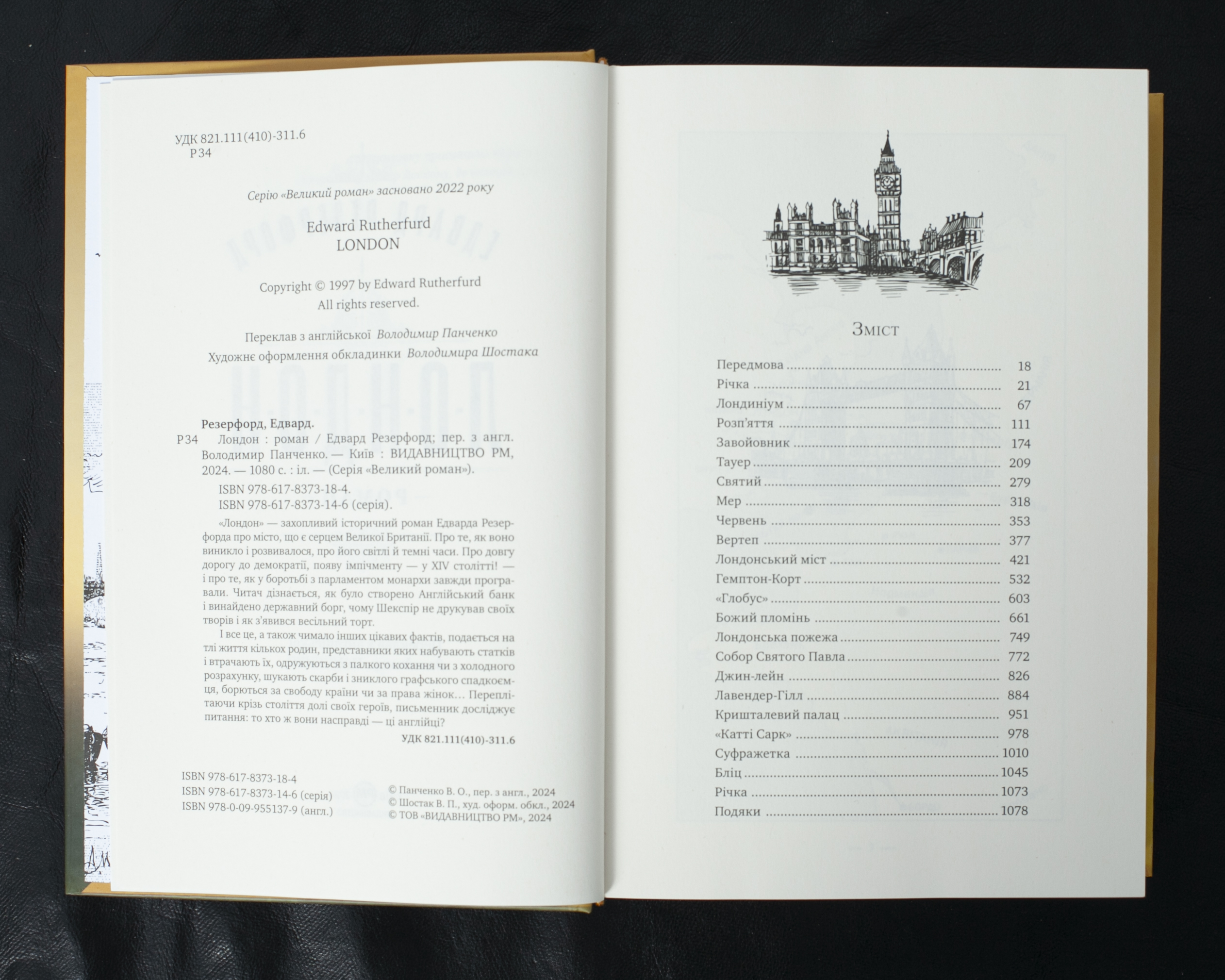 “Лондон” – це монументальний роман-панорама, який через історії звичайних людей та їхніх нащадків розповідає про становлення і розвиток одного з найвизначніших міст світу. Автор майстерно поєднує історичні факти з художнім наративом, показуючи як формувались ключові британські інституції – від появи парламентаризму та імпічменту до заснування Англійського банку. Роман розкриває не лише політичні та економічні трансформації, але й культурні феномени, побутові традиції та соціальні зміни, що сформували унікальний характер міста та його мешканців. Через долі персонажів різних епох читач спостерігає за тим, як маленьке римське поселення перетворюється на глобальний мегаполіс.