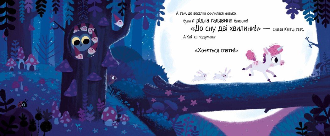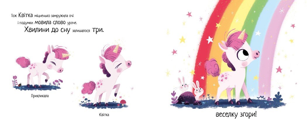 Віршована історія на ніч. За десять хвилин уже пора спати, але одноріжка Квітка готова робити що завгодно, тільки не вкладатися. Щохвилини на неї чекають пригоди! То чи встигне Квітка вчасно повернутися додому? Книжка-бестселер від Ріаннон Філдінг і Кріса Чаттертона, яка чудово допомагає малю- кам заспокоїтися перед сном.