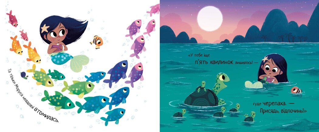 Віршована історія на ніч. За десять хвилин усім русалам, русалкам та малим русалятам час лягати у ліжечка, а маленька русалка Моруся чомусь зовсім не хоче спати! У синьому морі на неї чекають цікаві пригоди й зустрічі — то чи встигне Моруся вчасно лягти в ліжечко? Книжка-бестселер від Ріаннон Філдінг і Кріса Чаттертона, яка чудово допомагає малюкам заспокоїтися перед сном.