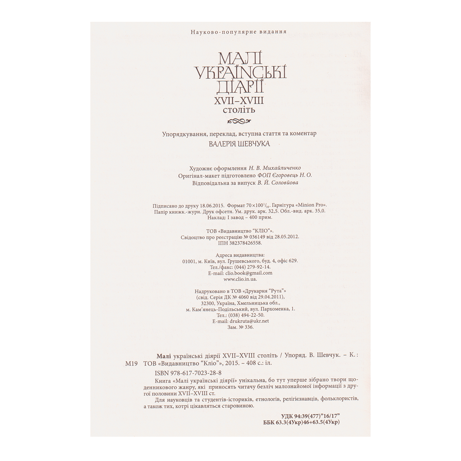 Головна Сучасні видання С4. За видавництвами С4.8. Кліо Малі українські діярії 17-18 ст.