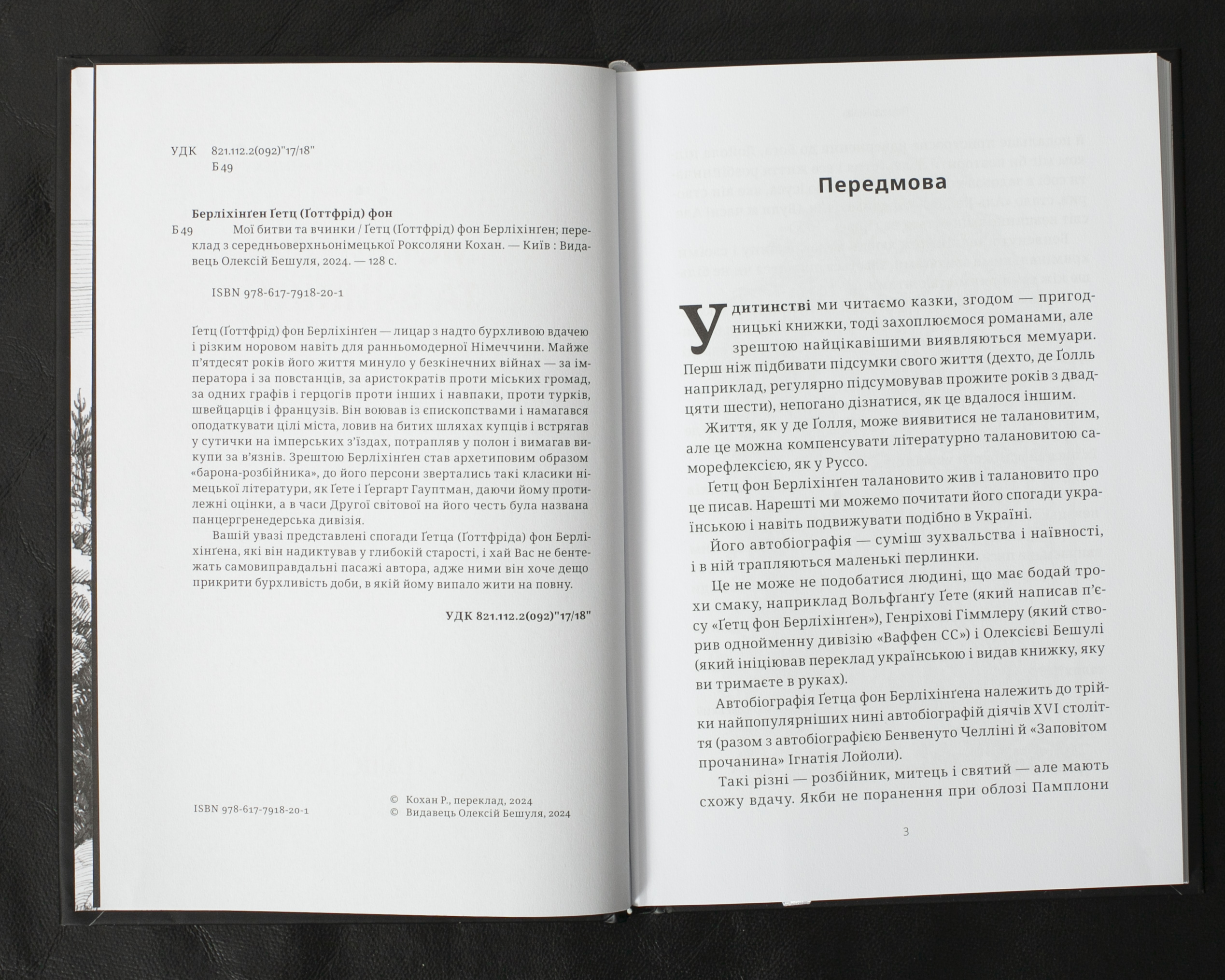 Унікальний історичний документ – мемуари Ґетца фон Берліхінґена, одного з останніх представників середньовічного лицарства в епоху раннього Нового часу. Протягом майже п’яти десятиліть він брав участь у численних військових конфліктах: воював за імператора і проти нього, служив різним князям, протистояв містам, церковним князівствам і навіть іноземним арміям. Його бурхливе життя, сповнене війн, грабунків і викупів за полонених, зробило його символічною постаттю “барона-розбійника” та надихнуло багатьох німецьких письменників, зокрема Ґете. Мемуари, продиктовані на схилі років, відверто змальовують драматичну епоху трансформації середньовічного суспільства, хоча й містять спроби автора виправдати деякі свої вчинки