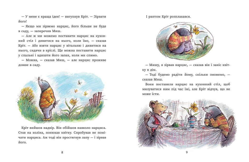 Книжка для родинного читання «Миш і Кріт зустрічають несподіванки» продовжує серію історій відомої британської дитячої письменниці, авторки багатьох бестселерів Джойс Данбар. У Миша і Крота бувають різні пригоди, часто геть несподівані, але головне, що друзі поруч і завжди готові підказати одне одному правильні дії, підтримати або просто разом зустріти щось неочікуване.