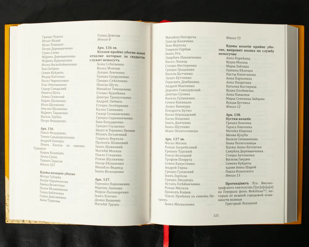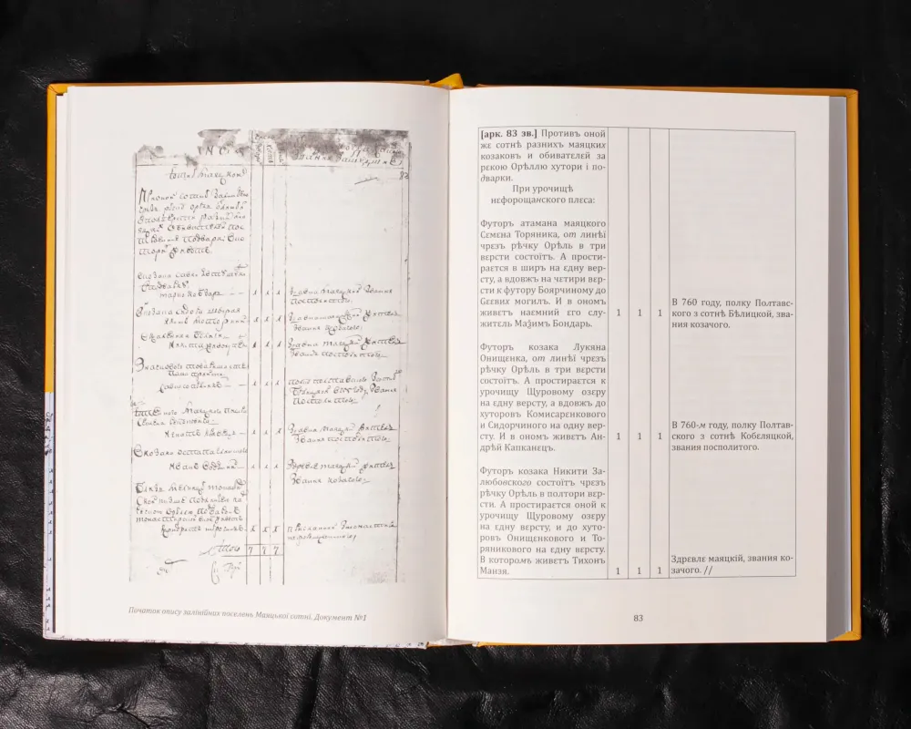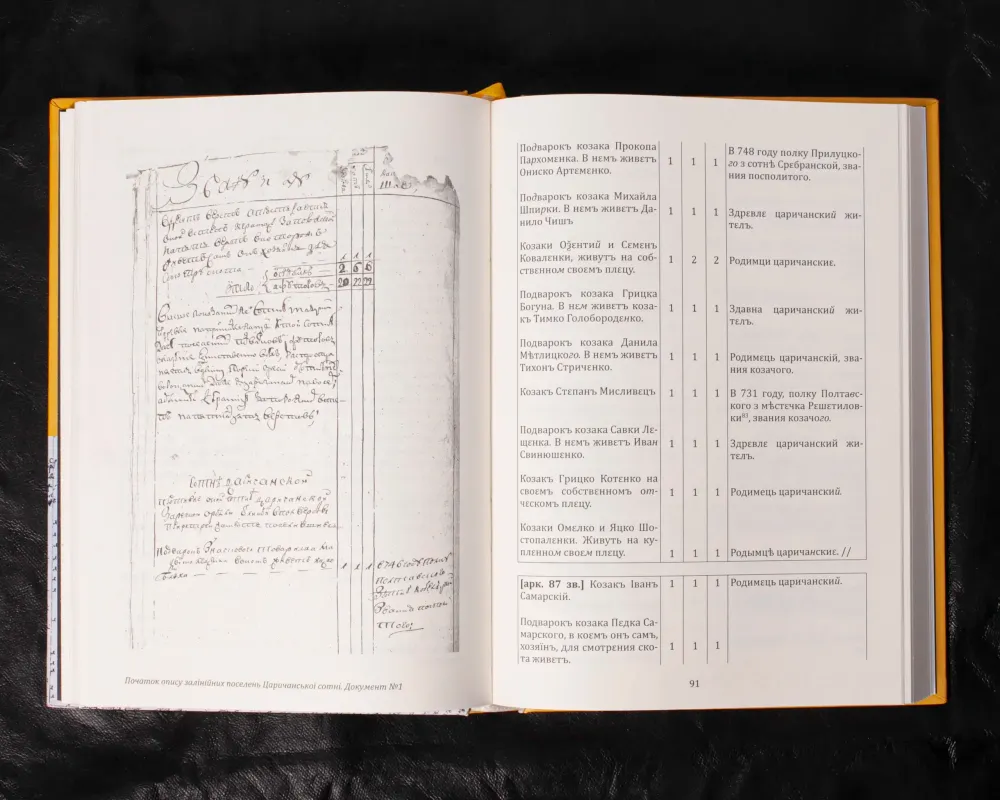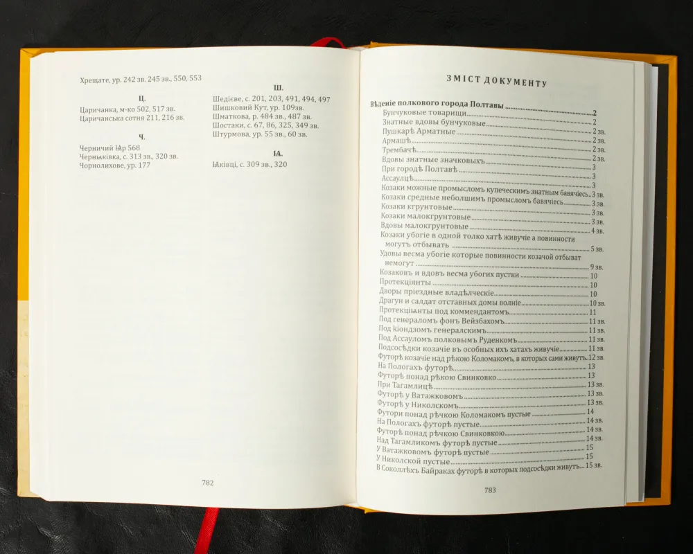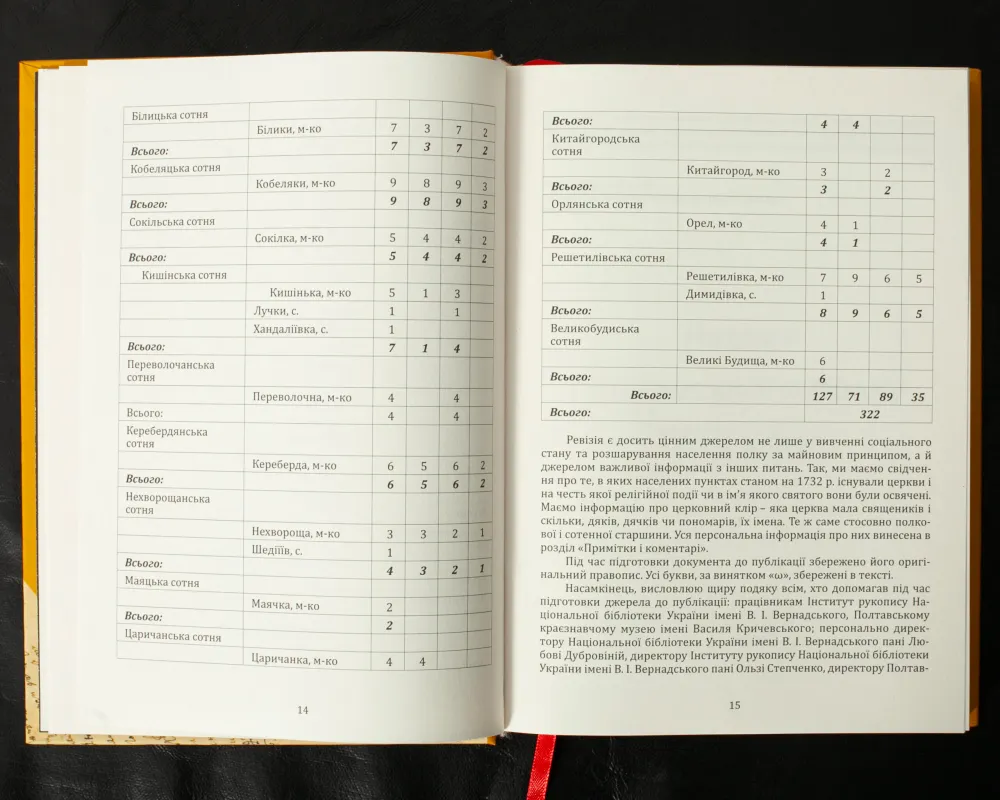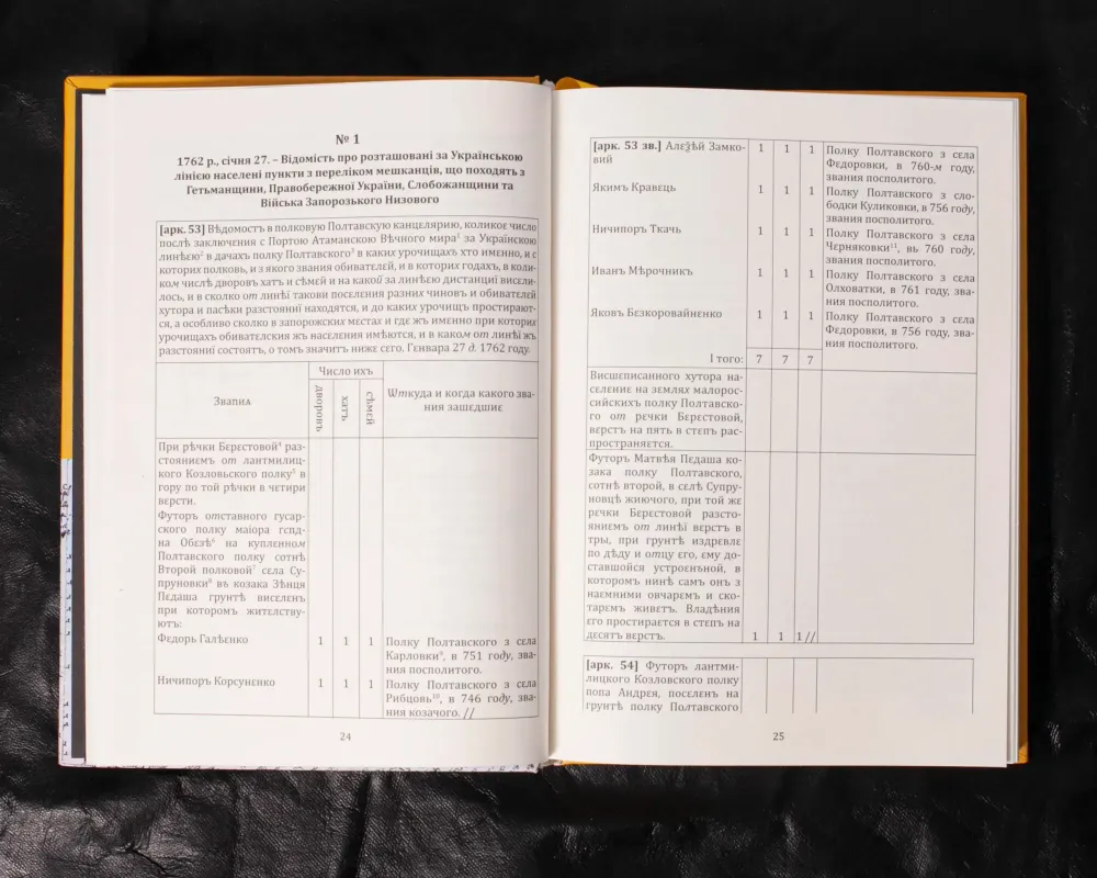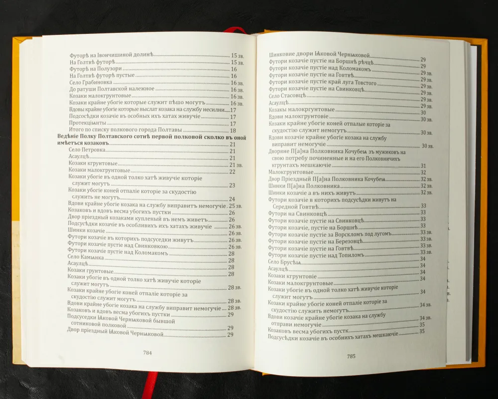 Містить перепис залінійних сотень Полтавського полку (тепер територія міста Дніпро та області). Імена і прізвища переселенців, статистичні дані. Потужне джерело для вивчення історії заселення краю.