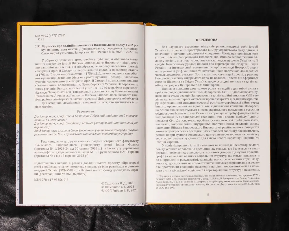 – Відомість про Залінійні поселення Полтавського полку 1762 року. (упорядник Олександр Сухомлин)