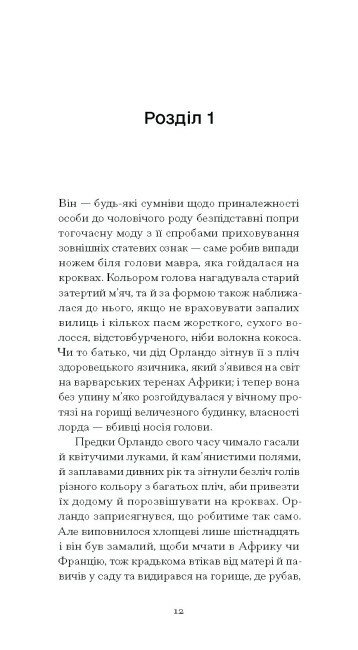 «Орландо» — найвідоміший завдяки блискучій екранізації і водночас найсуперечливіший роман В.Вулф, адже незвичний навіть для самої авторки. Про що цей твір? Чи це романтизована біографія молодого дворянина, що три століття поспіль не старішає, а згодом ще й перетворюється на жінку? Чи дотепна пародія? Чи майстерна гра авторки з простором і часом? А може, це жіноча версія «Портрета Доріана Грея»? Чи своєрідне освідчення в коханні завдовжки з роман? Ви маєте змогу дошукатися відповідей самотужки.