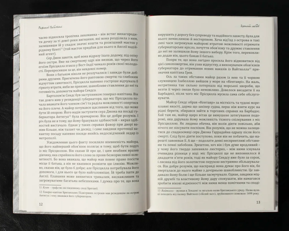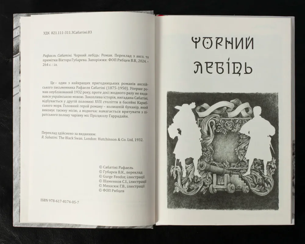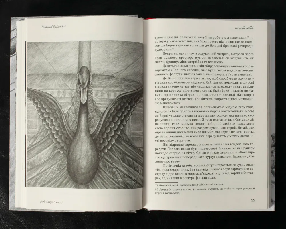Перша книга – “Чорний лебідь” – роман англійського письменника Рафаеля Сабатіні (1875-1950), автора не менш відомої серії про капітана Блада та роману “Скарамуш”