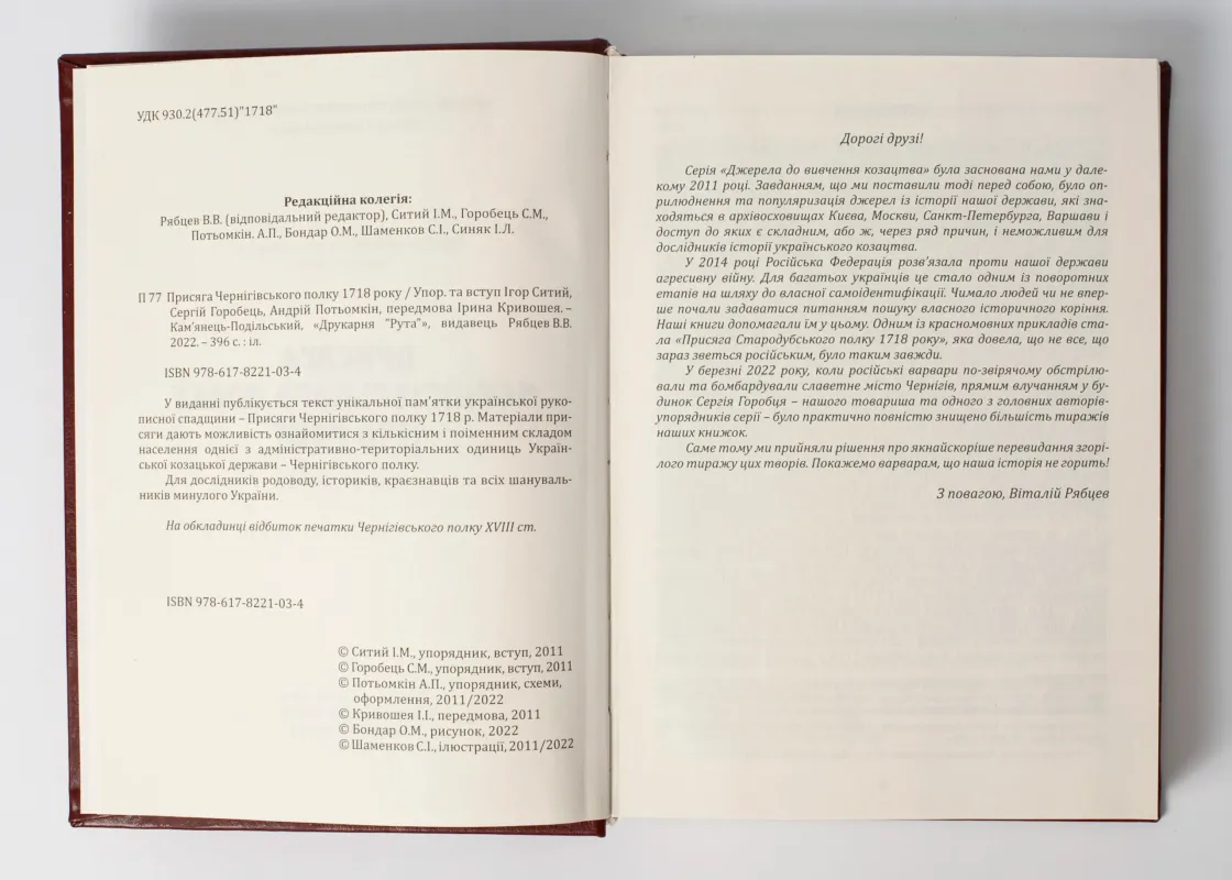 Присяга Чернігівського полку 1718 року (Подарунковий варіант книги)