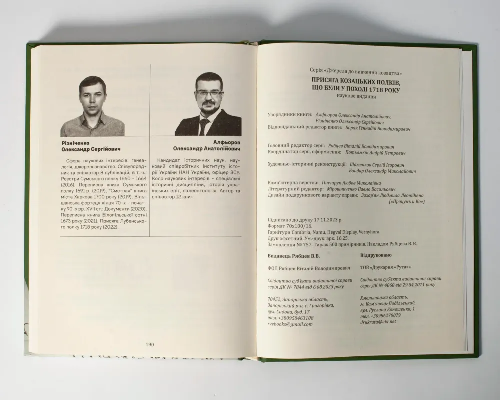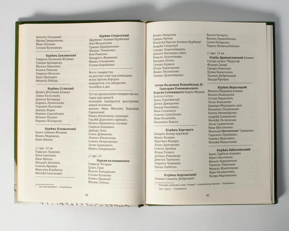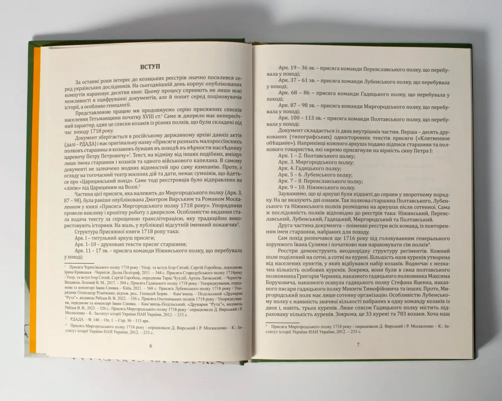 Книга містить унікальний архівний перепис козацьких полків Гетьманщини, що були відправлені в 1718 році на Царицинську лінію.