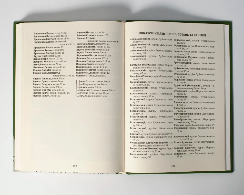 Полки, сотні, курені козаків, що були згадані в книзі