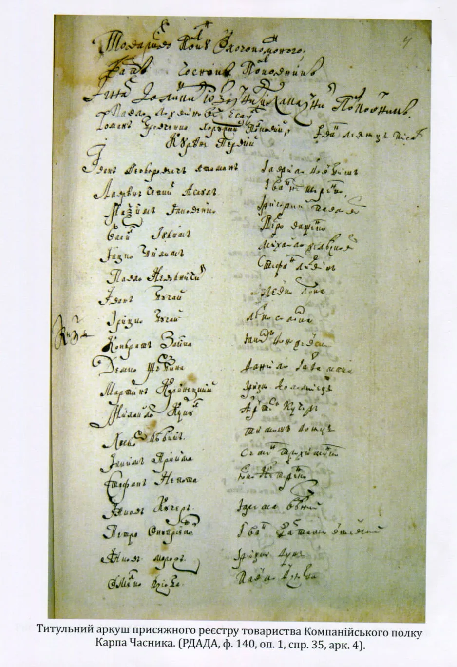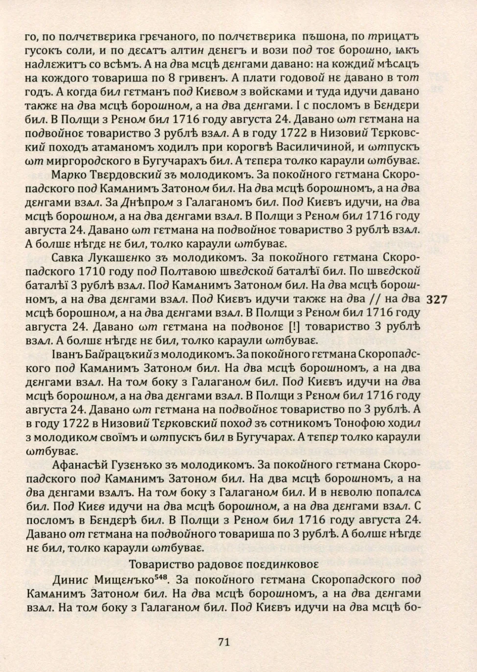– Текстів реєстрів найманців (компанійців та сердюків) за 1718 рік;