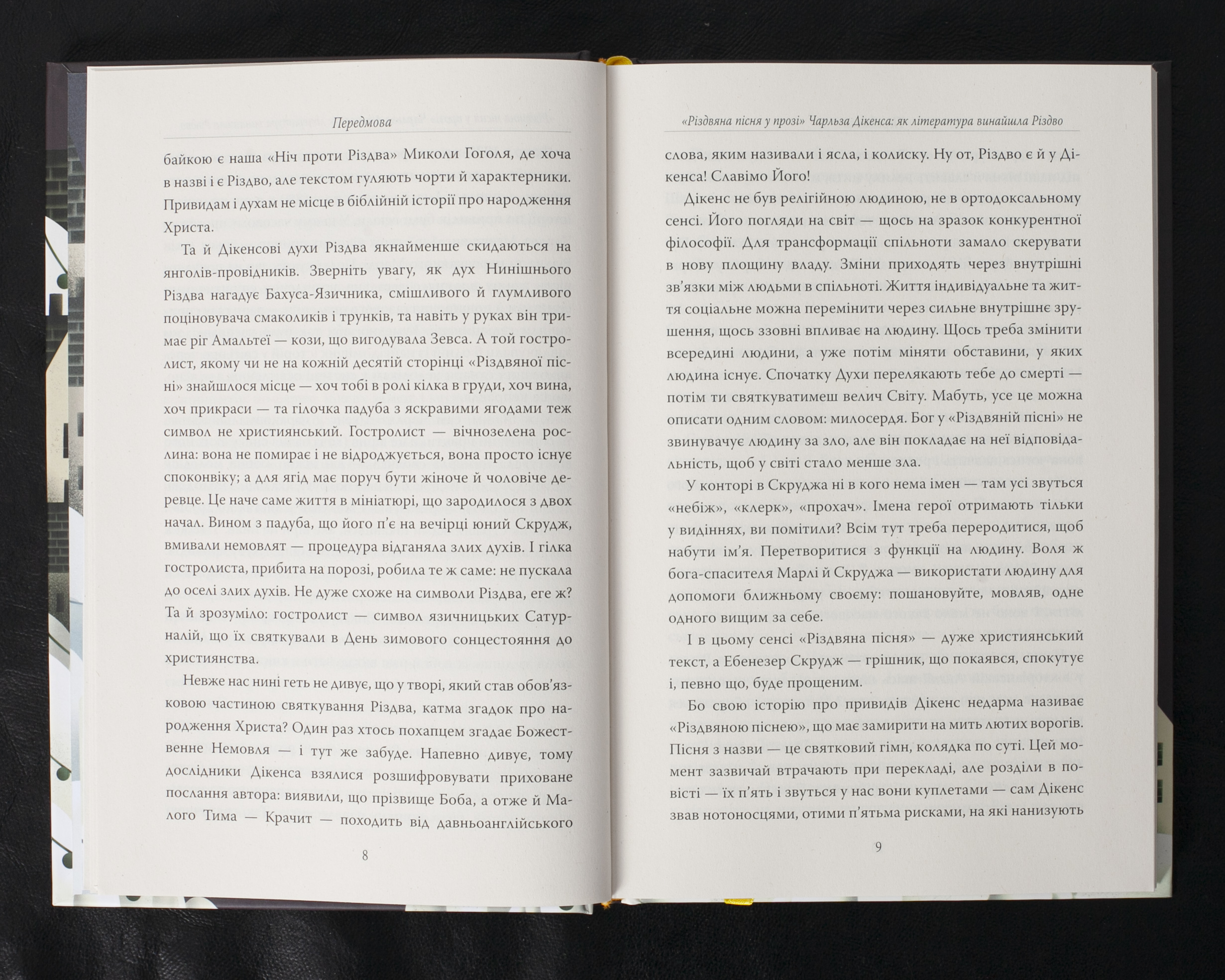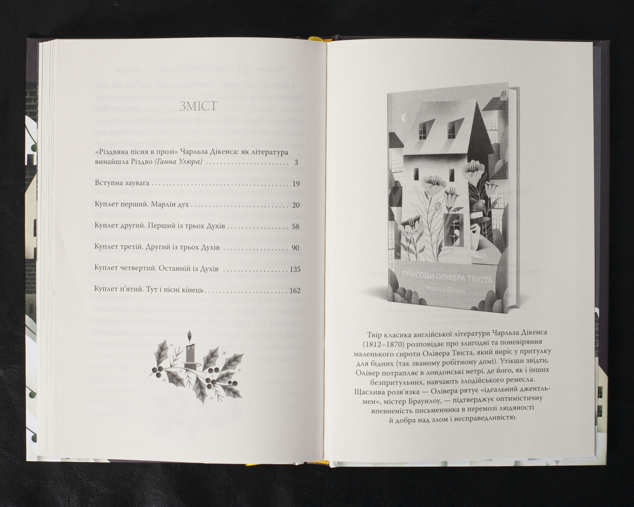 У цій святковій повісті Чарльз Дікенс розповідає історію Ебенезера Скруджа – скнари, який зневажає Різдво та людські радощі. Однієї різдвяної ночі його відвідують три духи – Духи Колишнього, Нинішнього і Прийдешнього Різдва, які показують йому його життя з несподіваного боку. Через ці містичні зустрічі герой переживає глибоке духовне переродження, відкриваючи для себе справжні цінності – доброту, співчуття та радість. Написана у 1843 р., ця історія вже майже два століття залишається однією з найулюбленіших різдвяних казок для всієї родини.