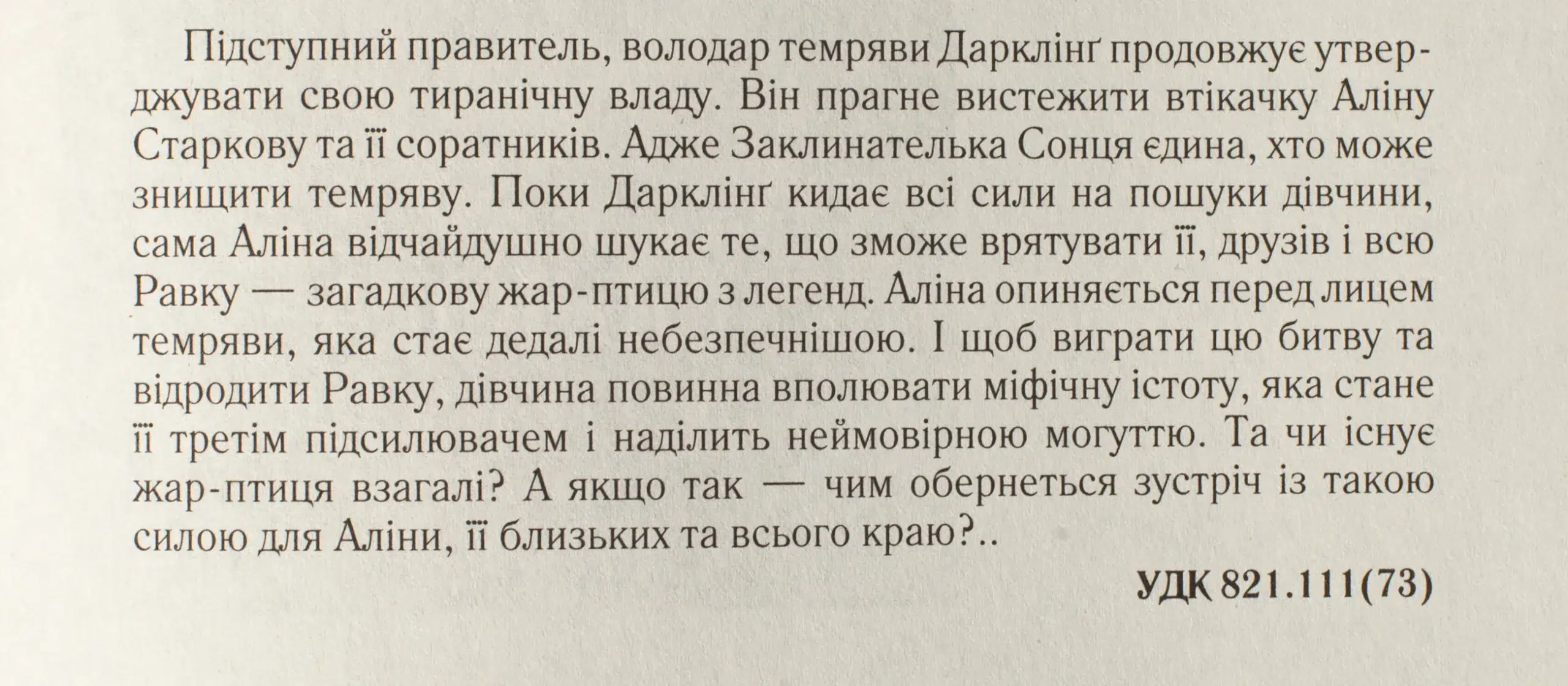 Підступний правитель Дарклінґ, Заклинатель Темряви, продовжує утверджувати свою тиранічну владу. Він прагне вистежити втікачку Аліну Старкову та її соратників. Адже Заклинателька Сонця єдина, хто може знищити темряву. Поки Дарклінґ кидає всі сили на пошуки дівчини, сама Аліна відчайдушно шукає те, що зможе врятувати її, друзів і всю Равку, — загадкову жар-птицю з легенд гриш. Аліна опиняється перед обличчям темпряви, яка стає дедалі небезпечнішою. І щоб виграти цю битву і відродити Равку, дівчина повинна вполювати міфічну істоту. Але легенди кажуть, що вогняний птах принесе руїну та погибель для всіх…