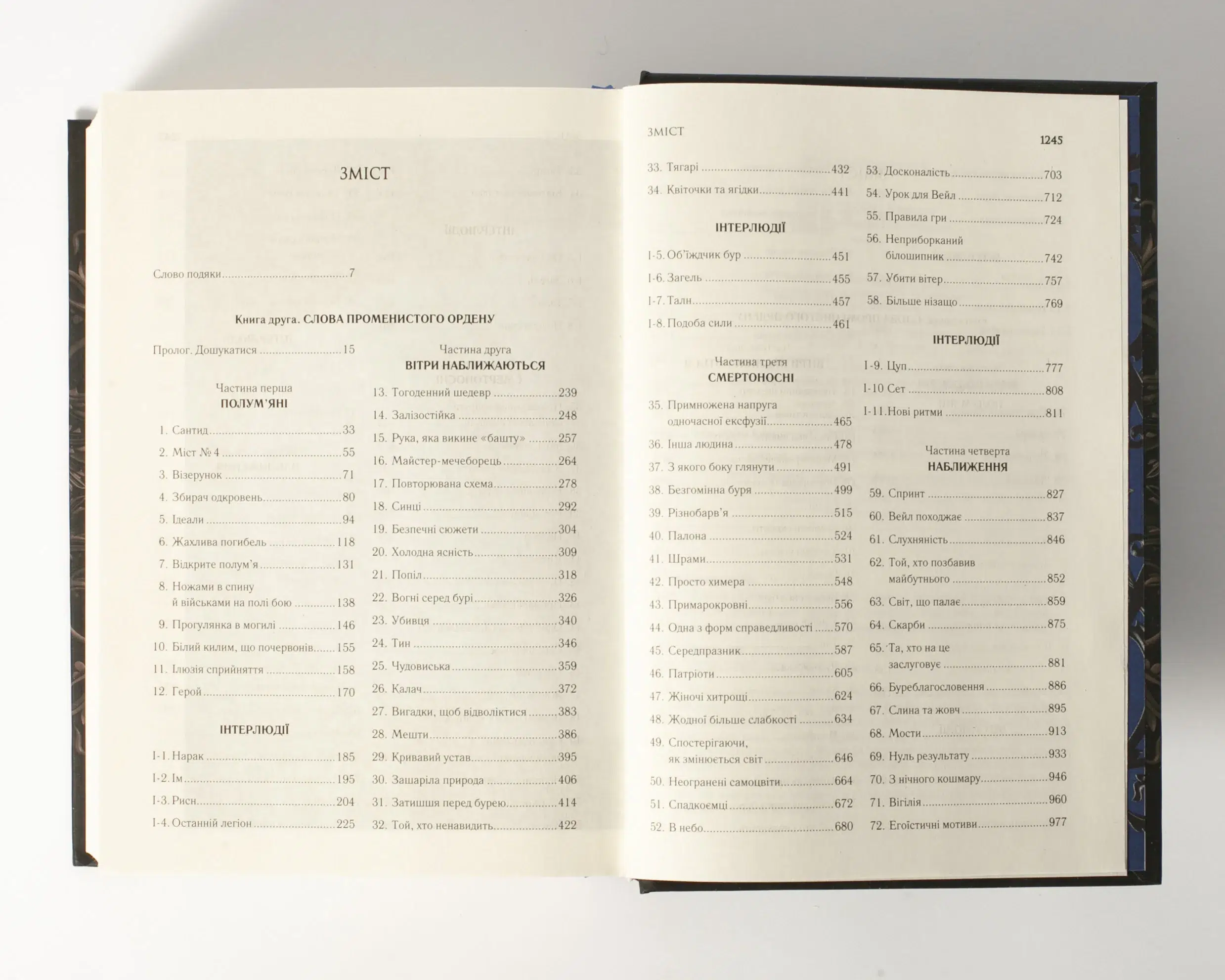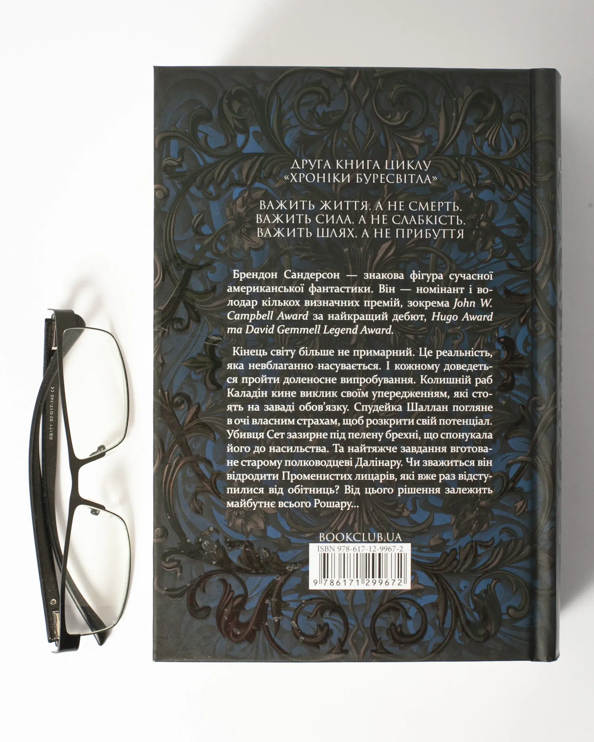 Кінець світу більше не примарний. Це реальність, яка невблаганно насувається. І кожному доведеться пройти доленосне випробування. Колишній раб Каладін кине виклик своїм упередженням, які стоять на заваді обов’язку. Спудейка Шаллан погляне в очі власним страхам, щоб розкрити свій потенціал. Убивця Сет зазирне під пелену брехні, що спонукала його до насильства. Та найтяжче завдання вготоване старому полководцеві Далінару. Чи зважиться він відродити Променистих лицарів, які вже раз відступилися від обітниць? Від цього рішення залежить майбутнє всього Рошару…