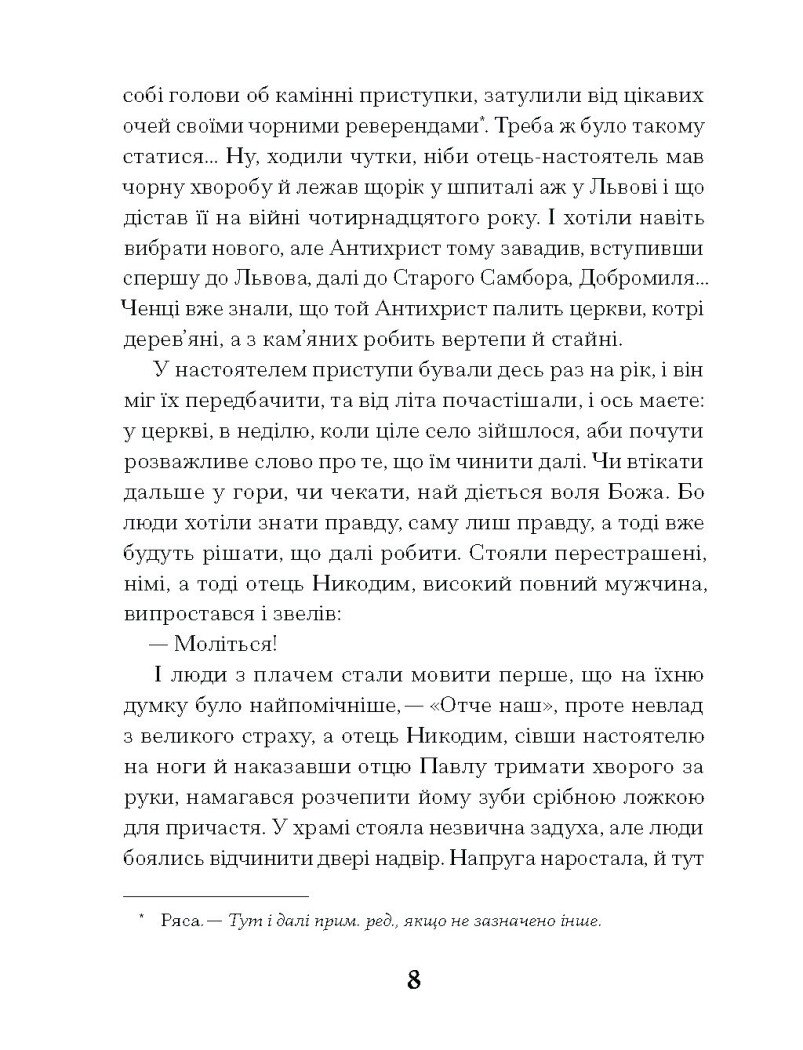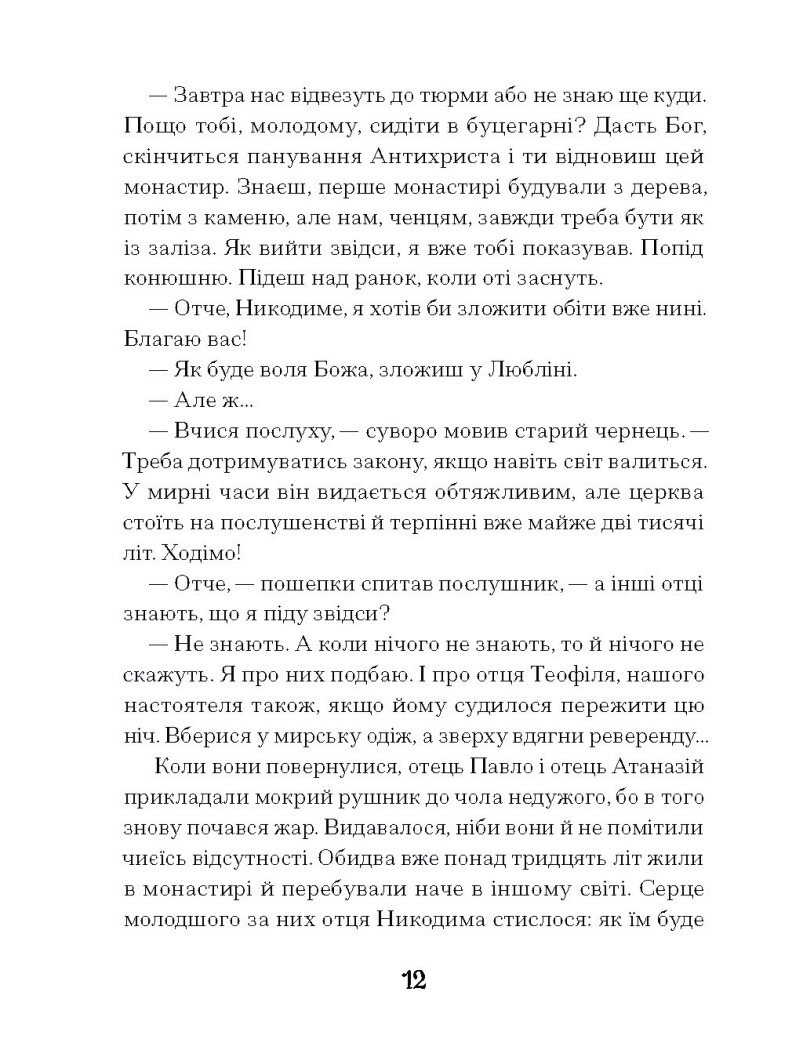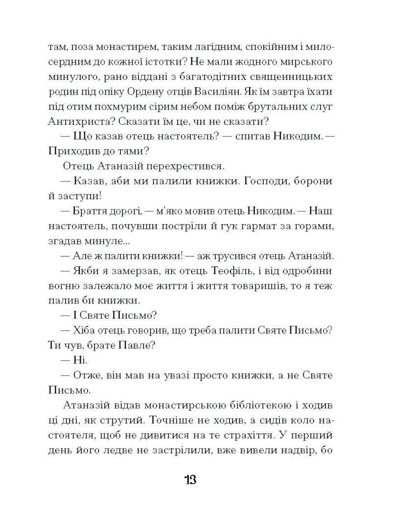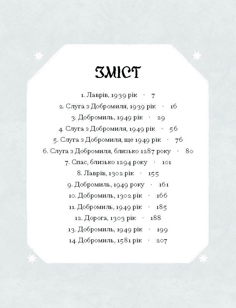 Замість старого монастиря в окрузі Добромиля тепер психлікарня, замість ченців — хворі. І лише коли починається злива, а всі навколо засинають, Слуга з Добромиля починає розповідати свою історію тривалістю в сімсот років. Він, дхампір — син опиря і відьми, — народився у цих краях, бачив їх розквіт і занепад, а тепер повернувся, щоб замкнути коло часу, де минуле й майбутнє нашаровуються, наче земля, на якій стоїть Добромильський монастир.