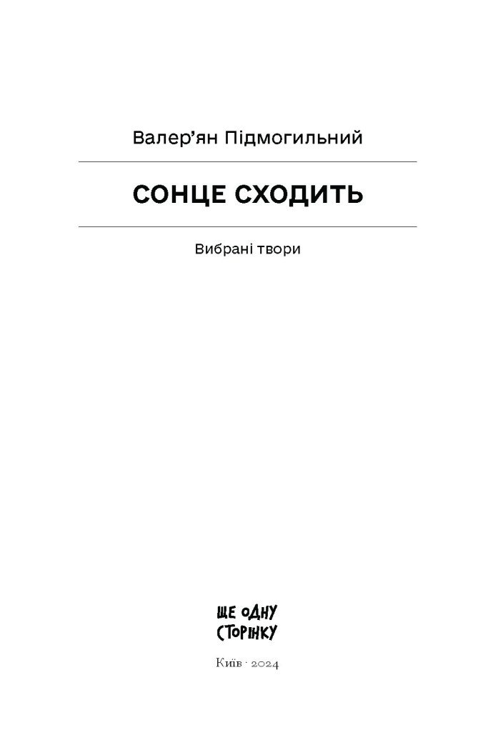 Головна Сучасні видання С4. За видавництвами С4.16. Ще одну сторінку (Ранок) Сонце сходить. Вибрані твори /Валер’ян Підмогильний/