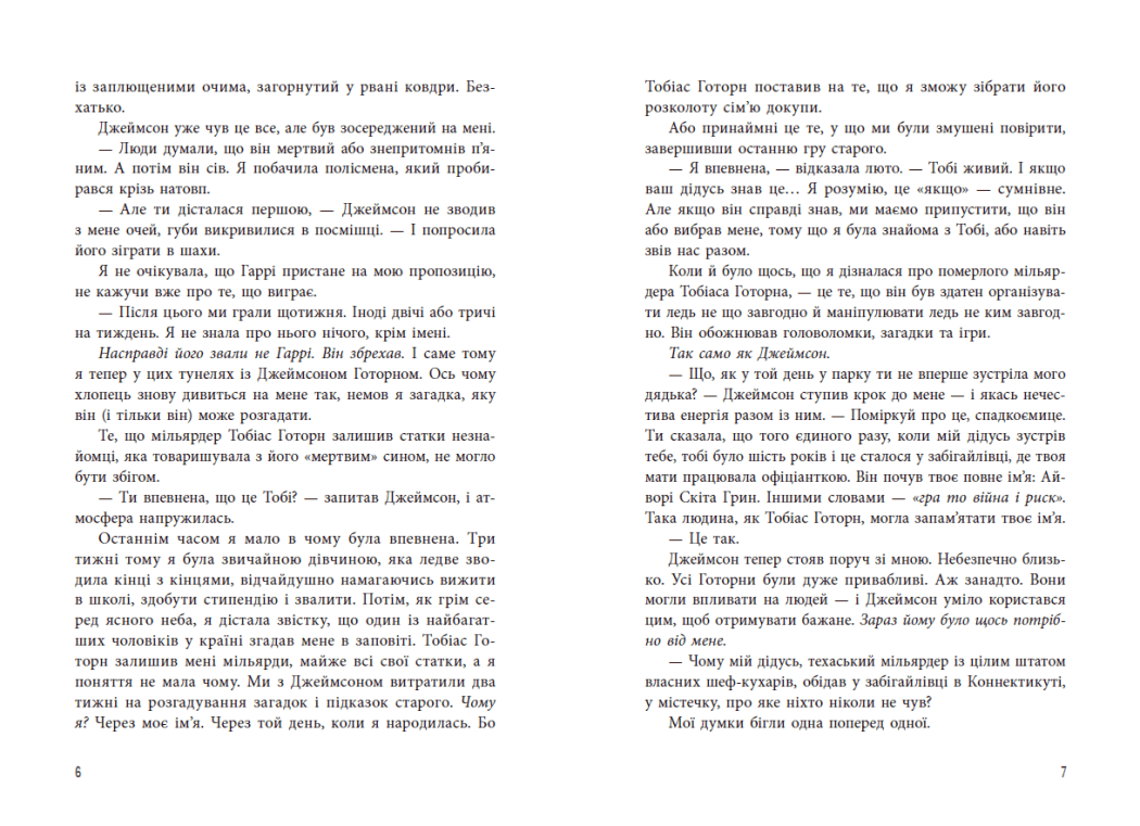 У другій частині серії «Ігри спадкоємців» Айворі продовжує збирати пазл, розгадуючи головомку мільярдера Тобіаса Готорна, чиї статки вона успадкувала. Дівчина все ще частина гри. Чи це вже не гра? Чому день народження Айворі оповитий секретами? Чи допоможе тест ДНК розплутати ці сімейні інтриги? Хай там що задумував собі старий Готорн, залишаючи спадок, та Айворі вирішує, що вона тут не для того, щоб її використовували.
