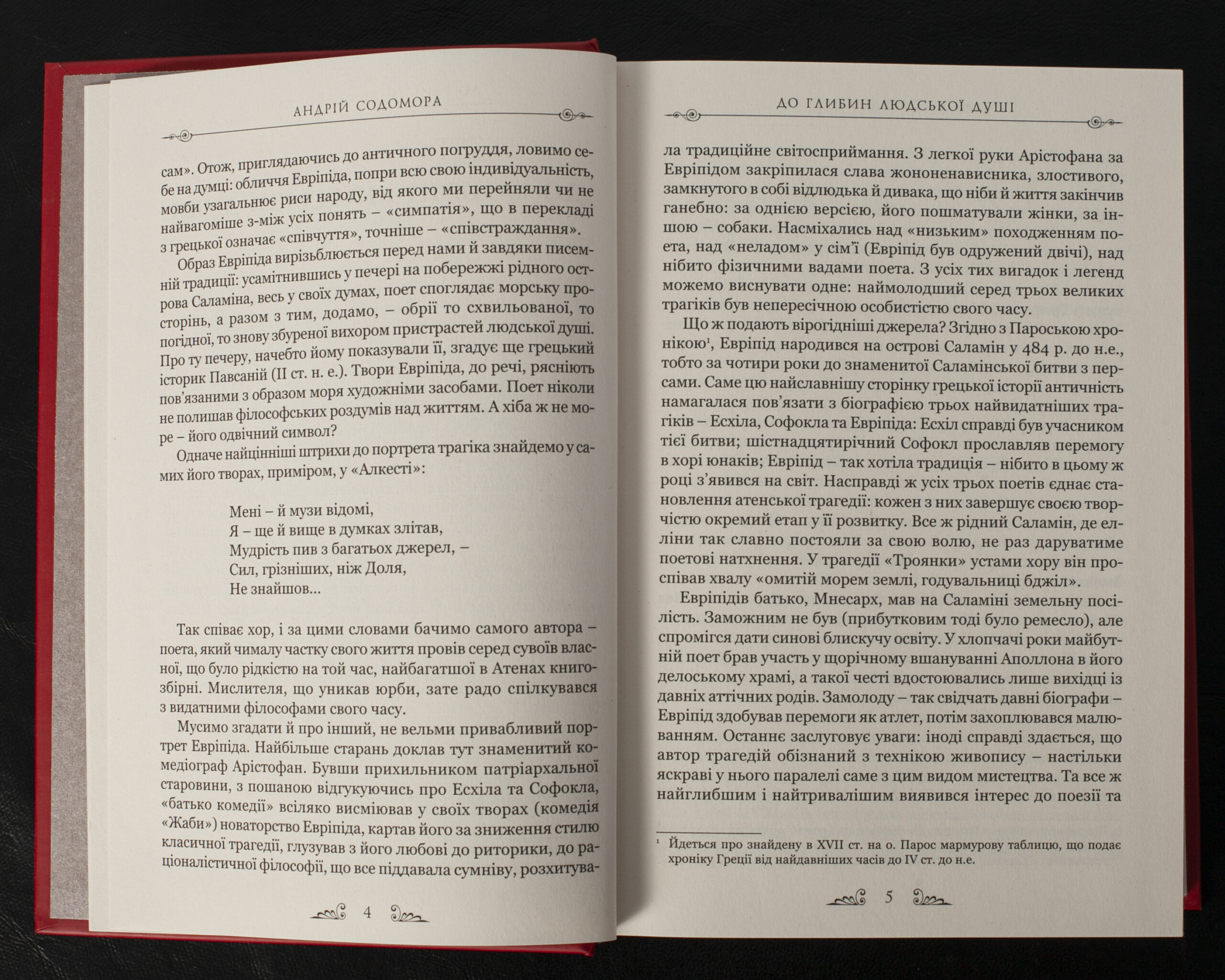 Видання представляє український переклад трагедій Евріпіда, одного з найвизначніших драматургів античності. Твори Евріпіда вирізняються глибоким психологізмом, філософським осмисленням людського буття та сміливим переосмисленням традиційних міфологічних сюжетів. Автор відомий своїм новаторським підходом до драматургії, критичним поглядом на суспільні норми та увагою до внутрішнього світу персонажів. Його трагедії порушують важливі морально-етичні питання, які залишаються актуальними й сьогодні