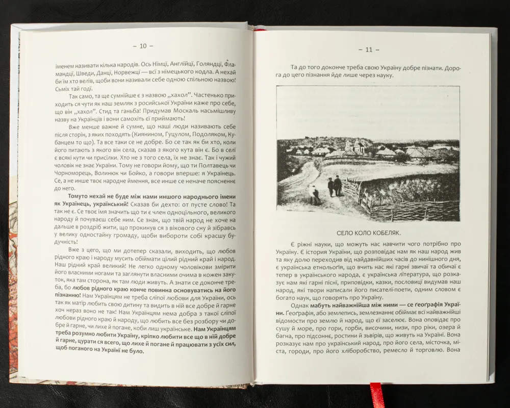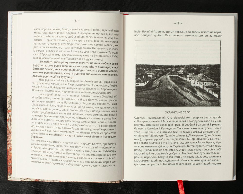 Наш рідний край великий! Не легко одному чоловікови змірити його власними ногами та заглянути власними очима в кожен закуток, яка там сторона, як там люди живуть. А знати се доконче треба, бо любов рідного краю конче повинна основуватись на його пізнанню! Нам Українцям не треба слїпої любови для України, ось так як матїр любить свою дитину та видить в нїй все добре й гарне хоч нераз воно не так! Нам Українцям нема добра з такої слїпої любови рідного краю й народу, що любить все без розбору чи добре й гарне, чи лихе й погане, коби лиш українське. Нам Українцям треба розумно любити Україну, кріпко любити все що в нїй добре й гарне, цурати ся всего, що лихе й погане й працювати з усїх сил, щоб поганого на Українї не було.»