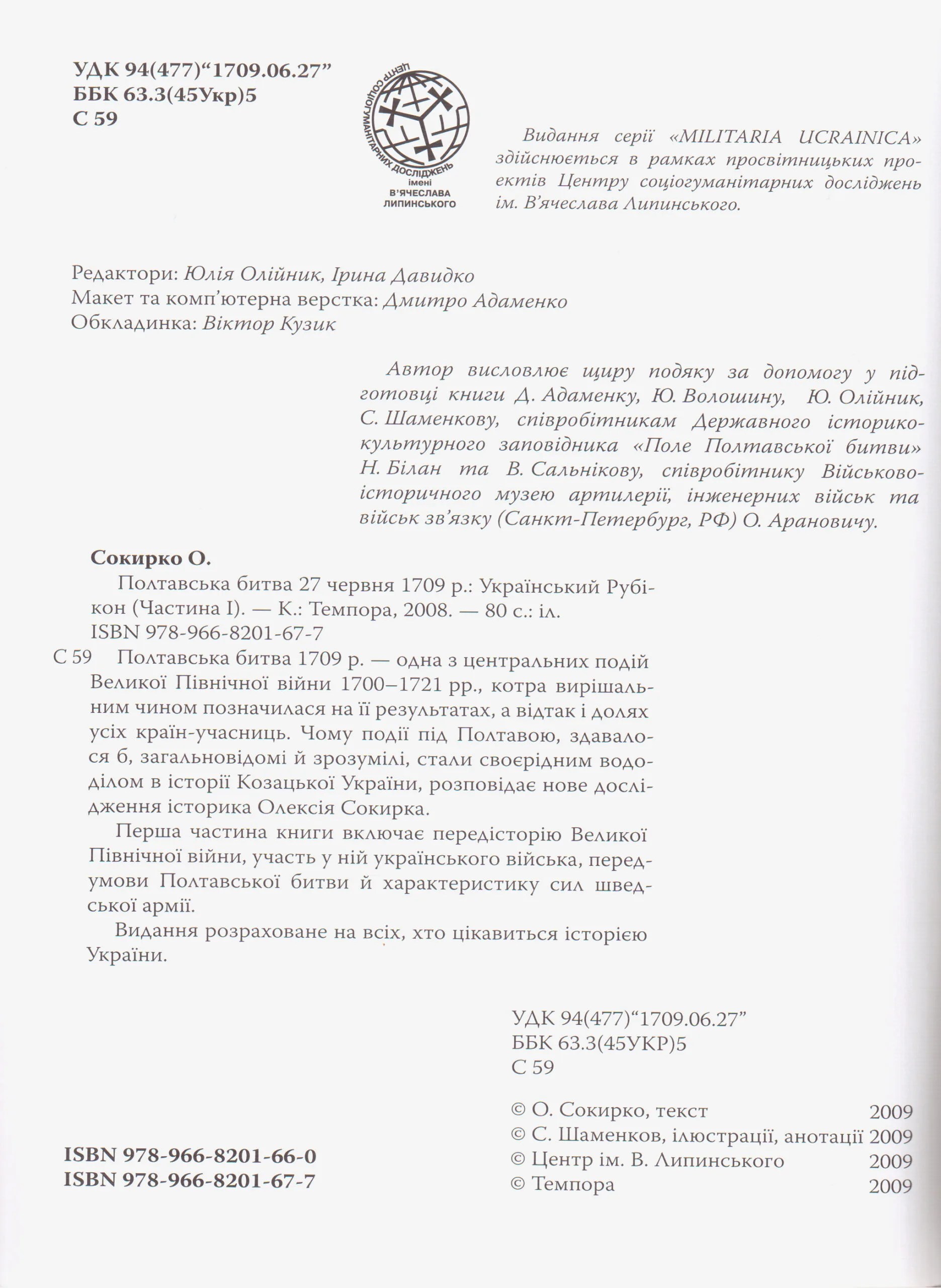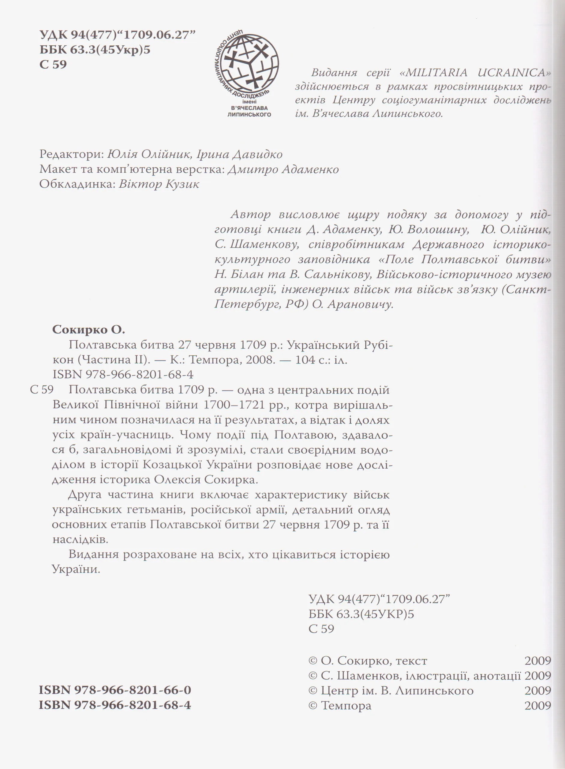 Головна Сучасні видання С4. За видавництвами С4.11. Темпора Український рубікон: Полтавська битва 27 червня 1709 р. (Олексій Сокирко)