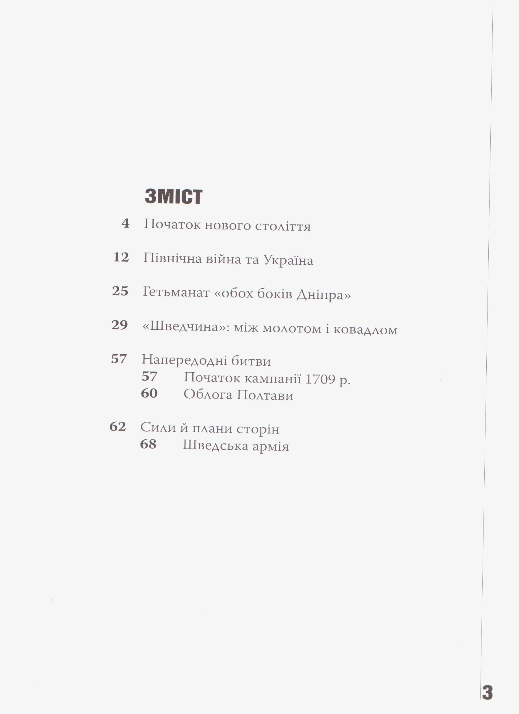 Перша частина книги включає передісторію Великої Північної війни, участь у ній українського війська, передумови Полтавської битви й характеристику сил шведської армії.