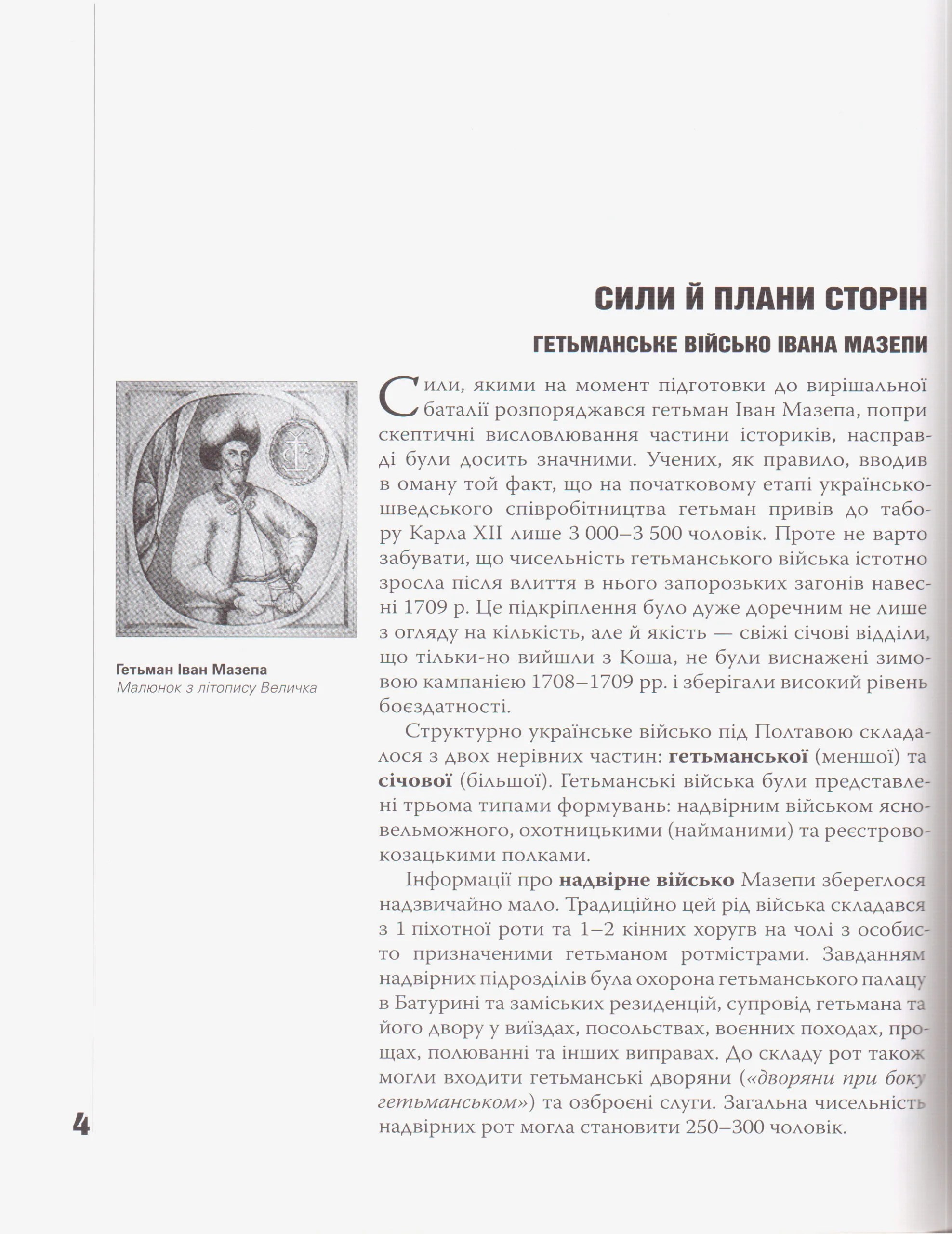 Друга частина книги включає характеристику військ українських гетьманів, російської армії, детальний огляд основних етапів Полтавської битви 27 червня 1709 р. та її наслідків.