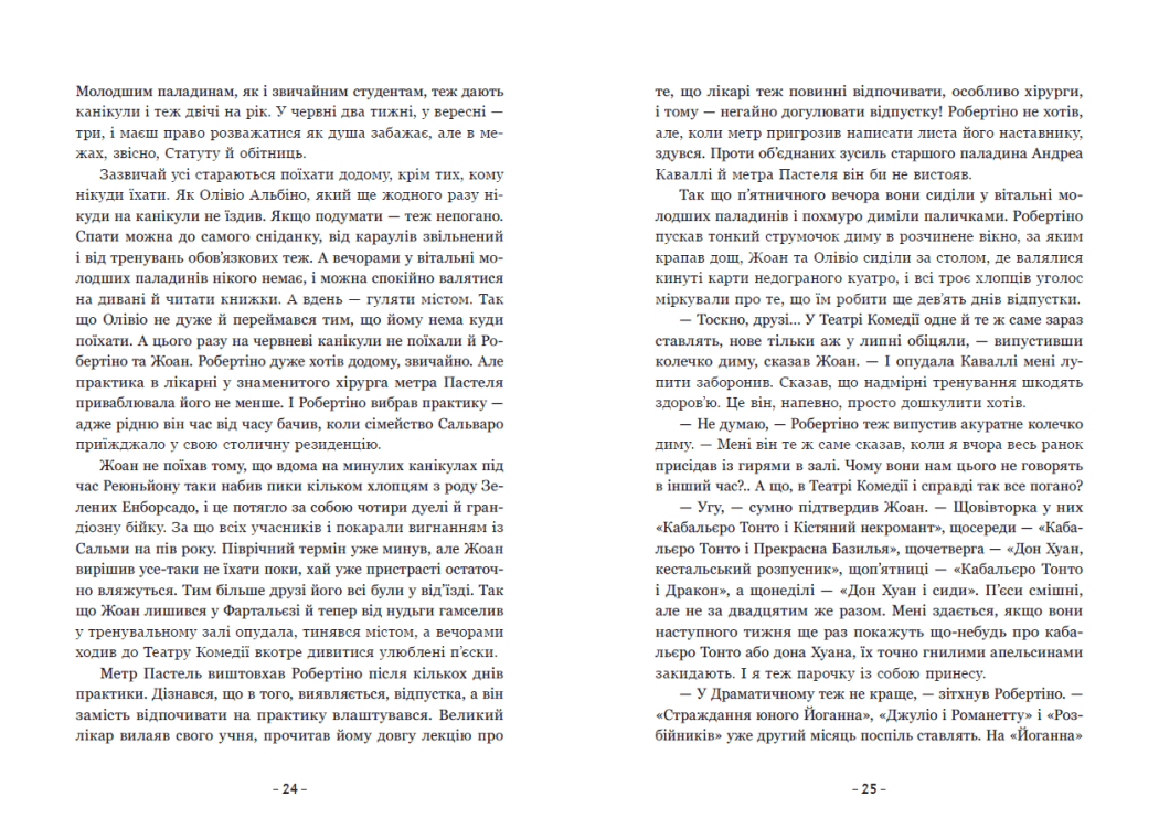 Шалені пригоди й битви зі злом, нудні лекції й виснажливі тренування з мечем і бойовим заклинанням…. Таке воно, життя студентів — майбутніх лицарів Діви. Про його перипетії повідав нам таємничий метр Грахілья, автор знаменитої серії книг про відважних юнаків, які забажали стати учнями Корпусу Паладинів. Але для завершення навчання самого бажання мало. Треба витримати суворий вишкіл і пройти Посвяту Духа та Посвяту Меча…