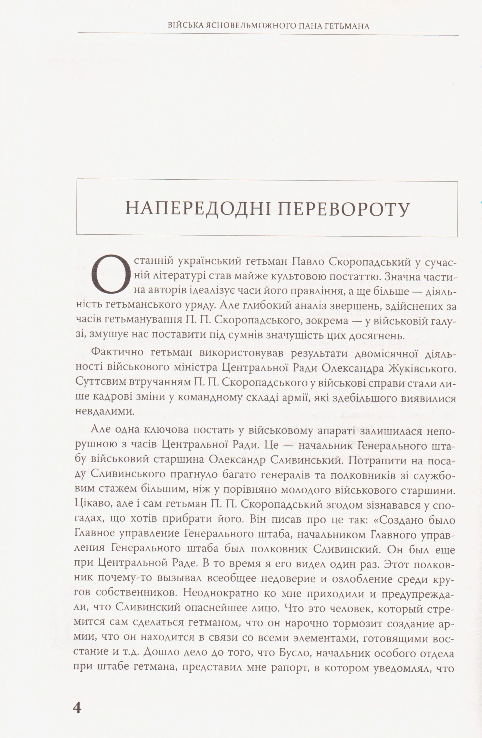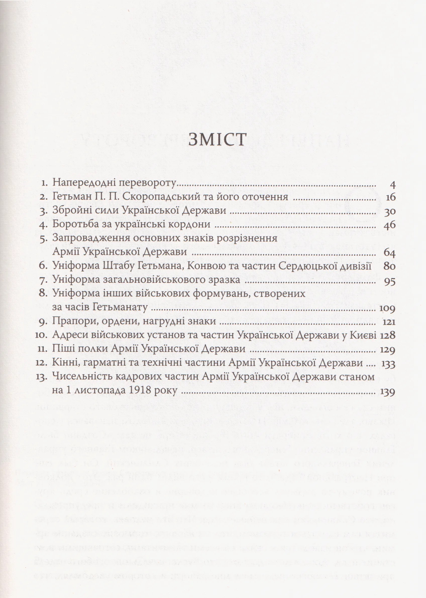 Сучасні дослідники по-різному оцінюють період правління в Україні гетьмана П. П. Скоропадського у травні–листопаді 1918 року. Одні перераховують чимало здобутків останнього Гетьманату, інші засуджують Скоропадського за ухили в російську сторону та марнування часу. У військовій галузі — організації українських збройних сил, гетьман користався наробками та здобутками свого попередника — військового міністра Центральної Ради Олександра Жуковського. Характерною відмінністю від періоду Центральної Ради стали, хіба що, зовнішні ознаки — уніформа, у царині якої за часів гетьманування П.П. Скоропадського було здійснено чималі зрушення. «Барвисті» сердюки та конвойці П. П. Скоропадського, характерні «гетьманські» погони, закарбовані на відеохроніці та фотонегативах того часу, назавжди ввійшли до вітчизняної історії. Саме ним і присвячено дослідження.