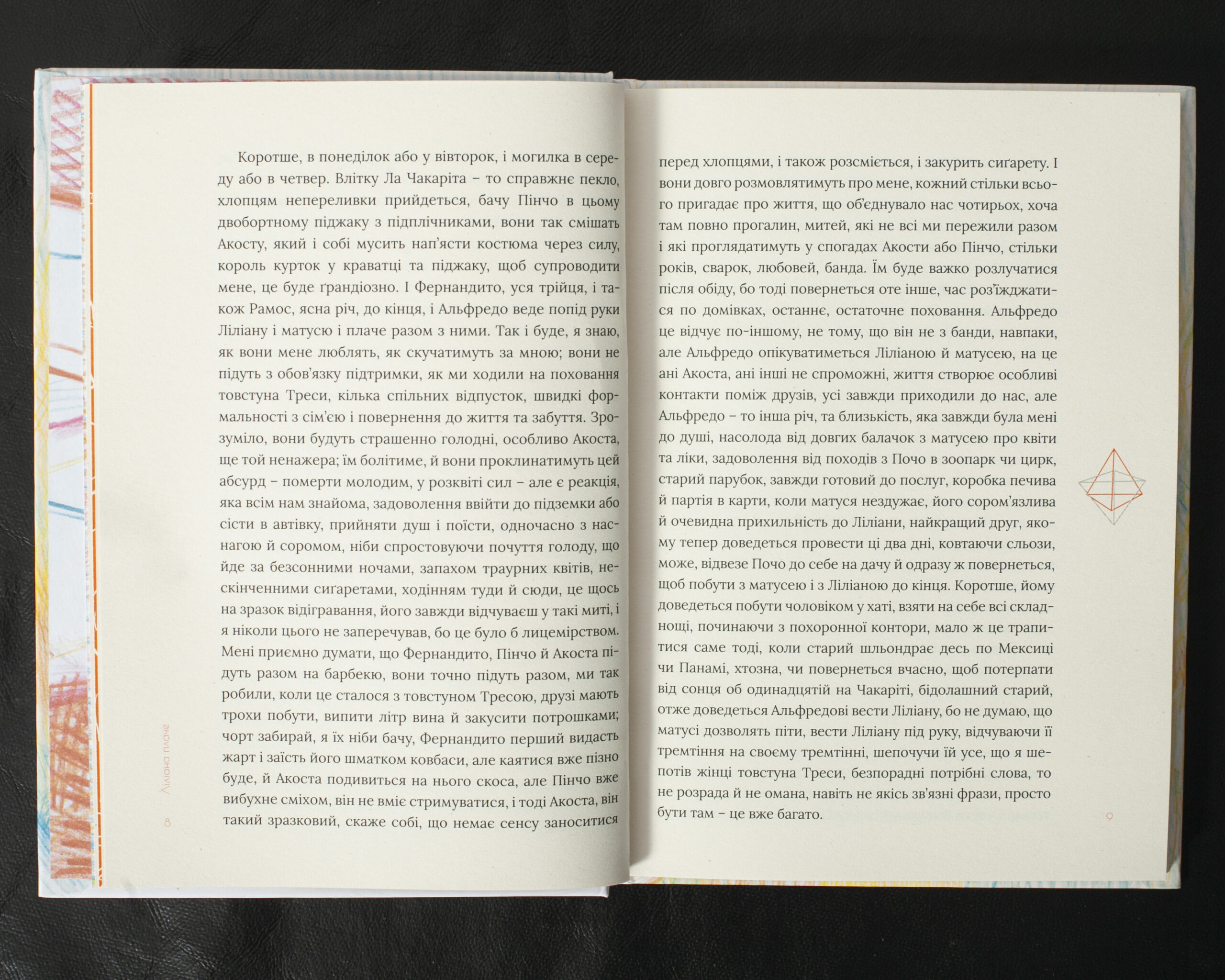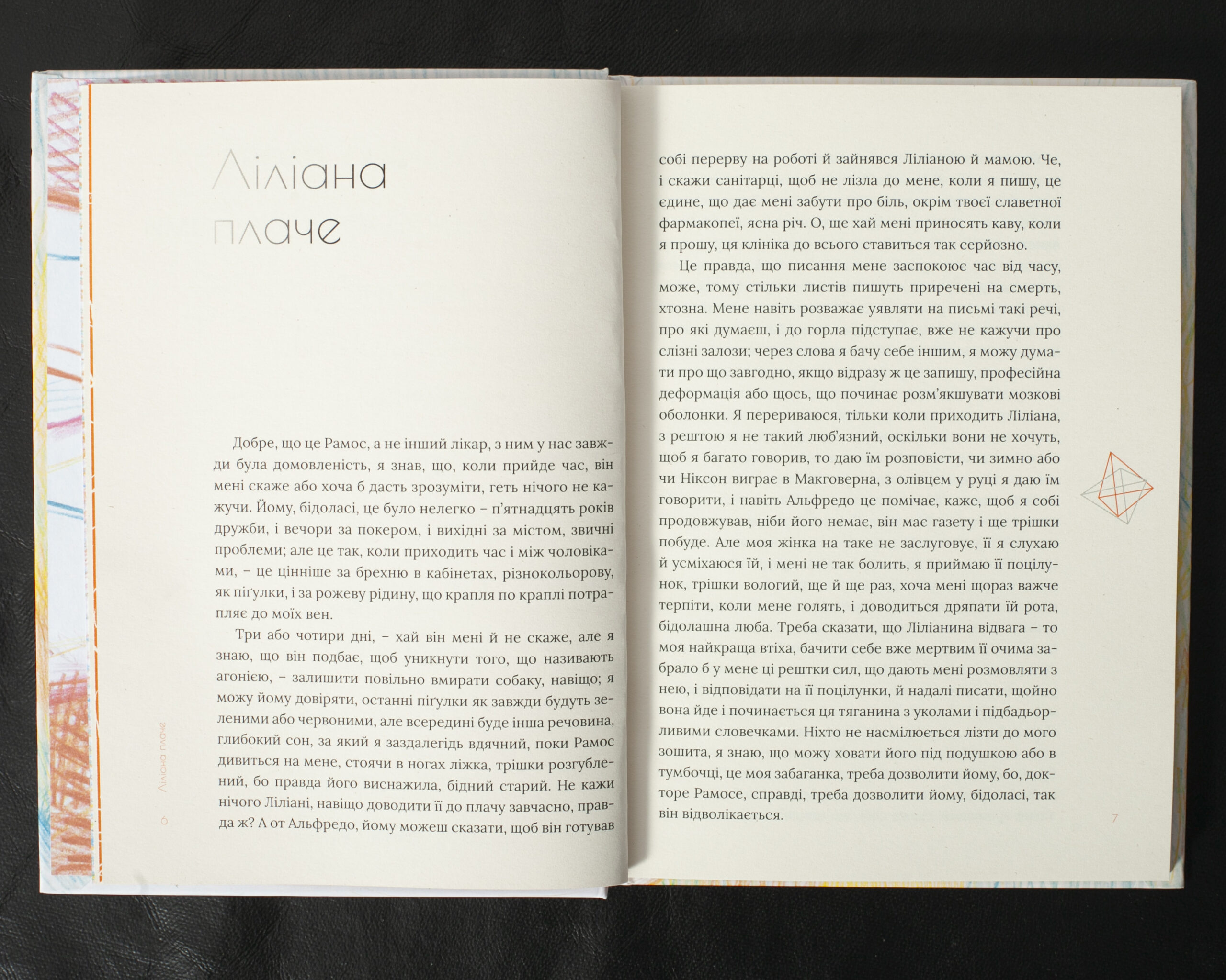 Оповідання виступають гранями цілісної фігури, спільно становлячи її зміст. Герой, який оповідає про свою власну смерть в оповіданні «Ліліана плаче», має свій протилежний бік в оповіданні «Фази Северо». Кожний із сюжетів знаходить у цій книжці альтернативні продовження, дивні форми відлуння.