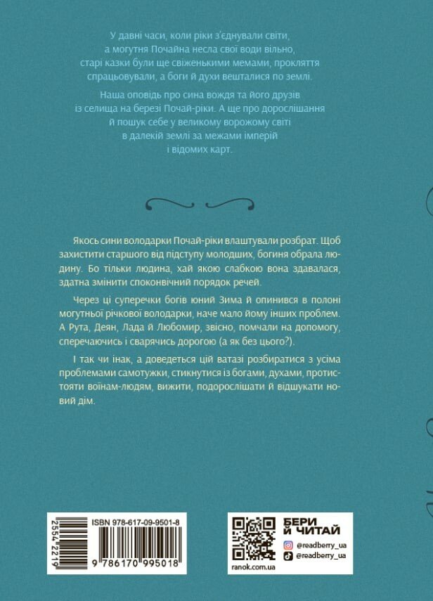 Ця історія могла статися десь на берегах Почайни, яку тоді не позначали ще на жодній карті. Світ був величезний і незвіданий, а боги й духи бродили серед людей. Але й тоді юність прагнула пригод, набуваючи сил діяти в складних обставинах, долаючи непевність і страх. Такі й наші герої — Зима, син вождя, та його вірна четвірка: Рута, Деян, Лада й Любомир.