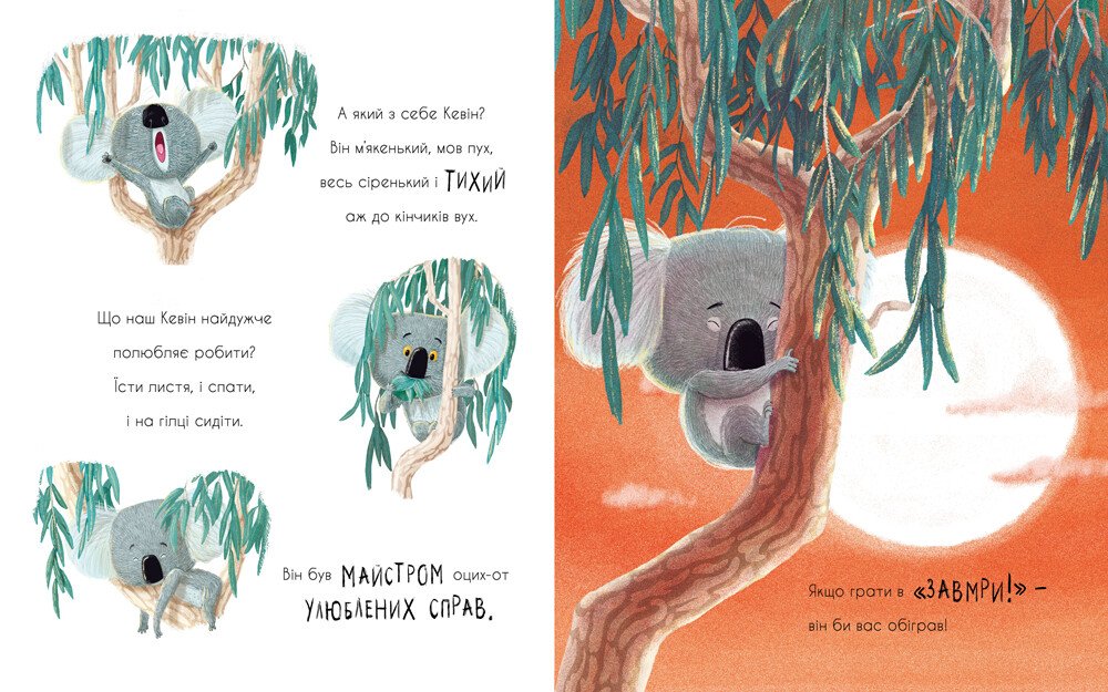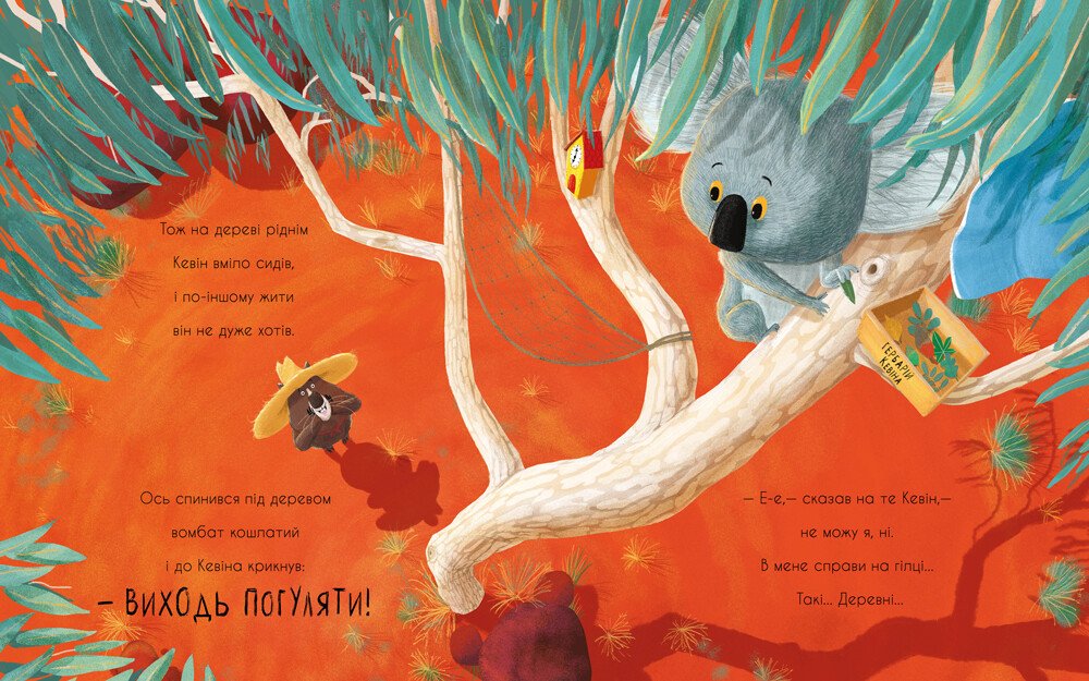 Знайомтеся, це Кевін — маленький коала, який любить, щоб усе було так, як він звик. Але коли його життя несподівано змінюється, Кевін виявляє, що це — на краще! Весела віршована історія для тих, кого будь-які зміни в житті дещо насторожують. Книжка — переможець книжкової премії Sainsbury’s Book Award і премії Evening Standard Oscar’s Book Prize.