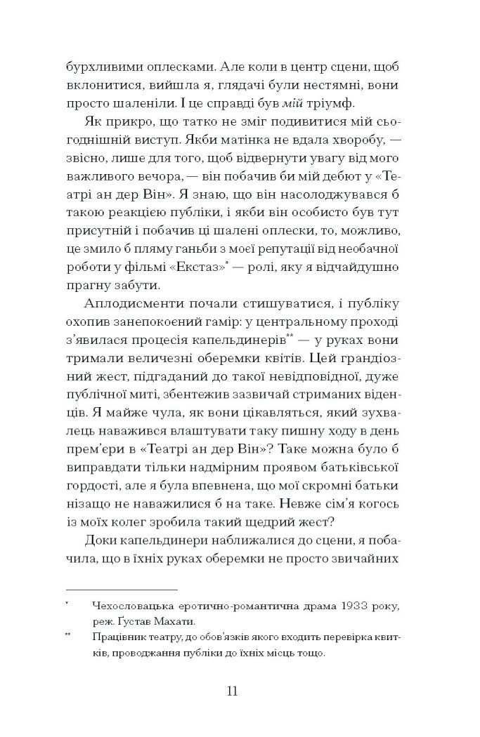 Краса врятувала її від Голокосту, від нацистів та їхньої партії, яка саме набирала сил у гітлерівській Німеччині та Європі, що спонукало її до шлюбу з австрійським торговцем зброєю. Бувши поруч зі своїм чоловіком, вона випадково почула про плани Третього Рейху і зрозуміла всю трагедію, яку несе політика Гітлера. Вона вигадала, як втекти із сімейного замку, і завдяки вихору подій опинилася в Голлівуді.