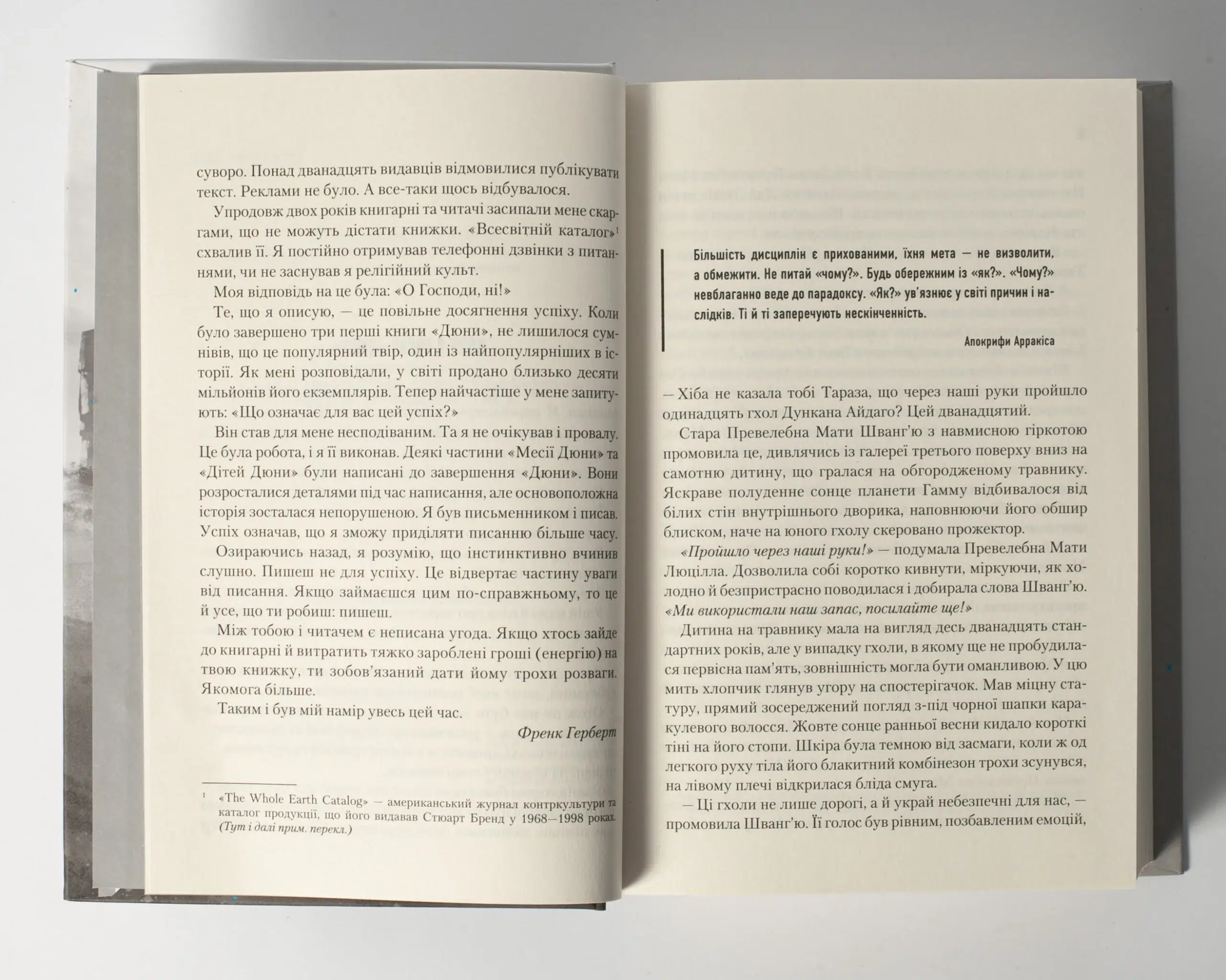 Френк Герберт — американський письменник-фантаст, найбільше відомий як творець «Дюни» та її продовжень. Хоча Герберт став відомим як автор наукової фантастики, він також був журналістом, фотографом, новелістом, книжковим рецензентом, екологічним консультантом та лектором. Дві екранізації роману «Дюна» вийшли у 1984 та 2000 роках. Готується новий фільм, режисером якого став Дені Вільньов.