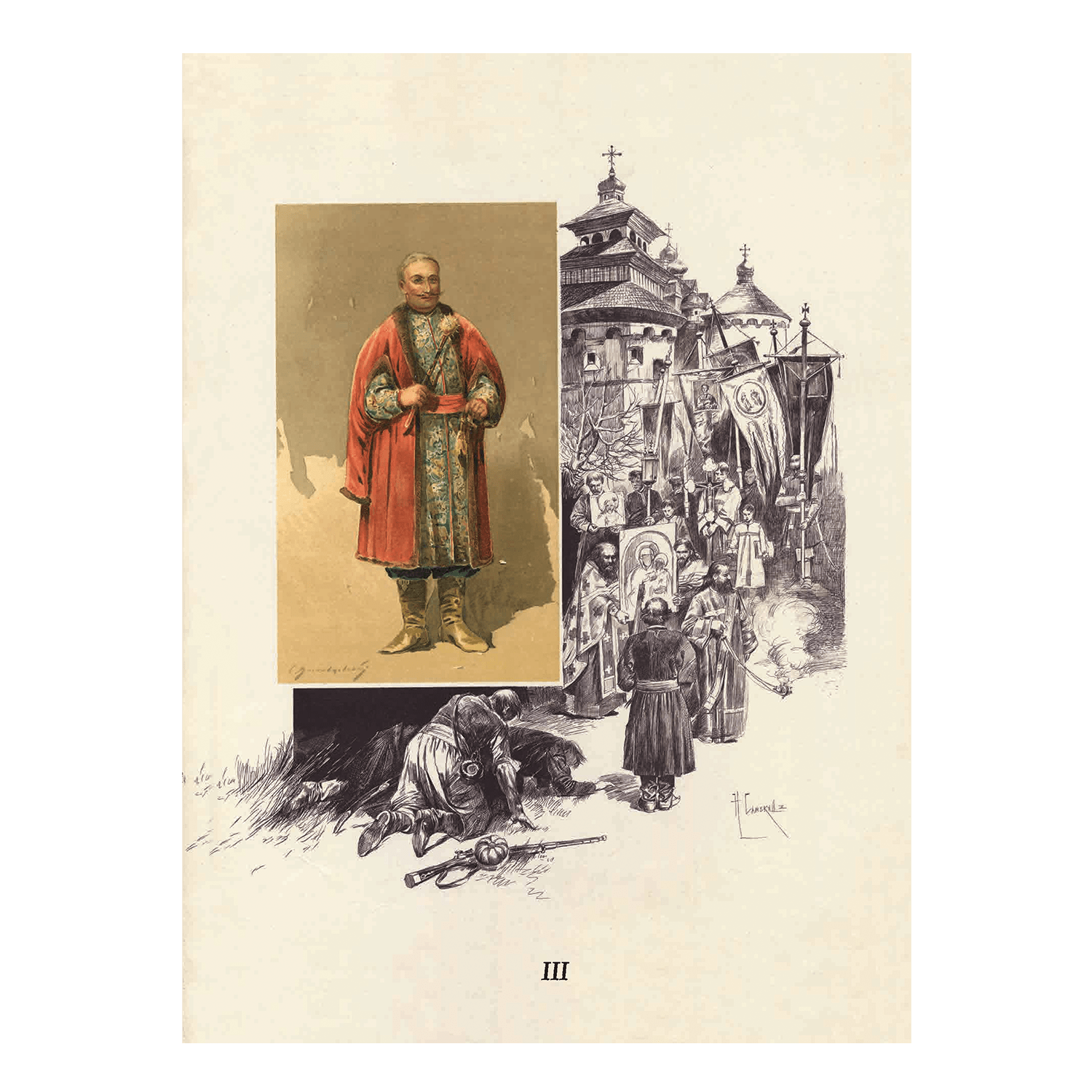 Книга містить 20 історичних нарисів авторства Д. І. Яворницького, проілюстрованих видатними українськими художниками — С. І. Васильківським та М. С. Самокишем.