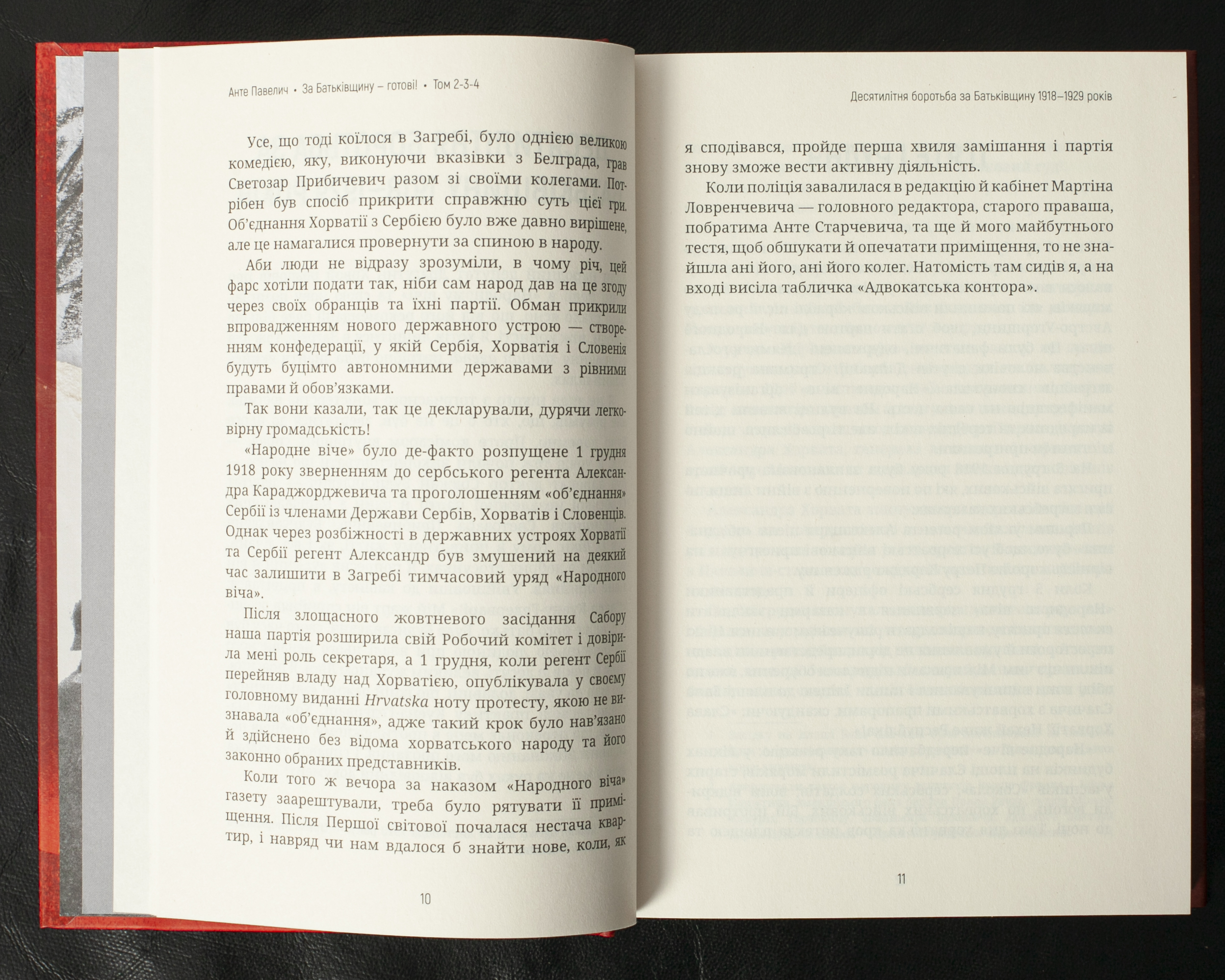 Перший том спогадів Анте Павелича охоплює період від його дитинства до створення Незалежної держави Хорватія. Автор описує свій шлях від початківця в політиці до лідера усташівського руху, розповідає про роки еміграції та боротьбу за хорватську державність у міжвоєнній Європі. Мемуари є важливим історичним джерелом, яке відображає складний період хорватської історії, коли народ опинився між різними геополітичними силами: сербським домінуванням, італійськими територіальними претензіями та намаганнями асиміляції з боку Угорщини