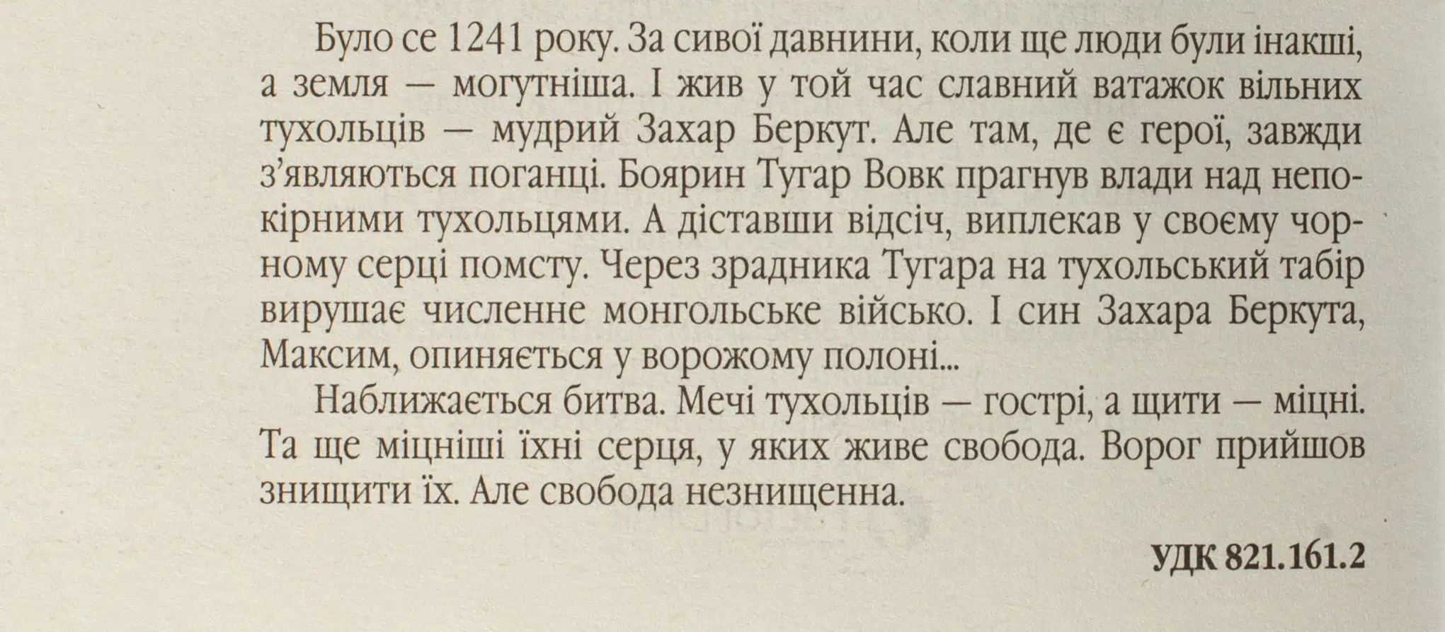 Було се 1241 року. За сивої давнини, коли ще люди були інакші, а земля – могутніша. І жив у той час славний ватажок вільних тухольців – мудрий Захар Беркут. Але там, де є герої, завжди з’являються поганці. Боярин Тугар Вовк прагнув влади над непокірними тухольцями. А діставши відсіч, виплекав у своєму чорному серці помсту. Через зрадника Тугара на тухольський табір вирушає численне монгольське військо. І син Захара Беркута, Максим, опиняється у ворожому полоні…