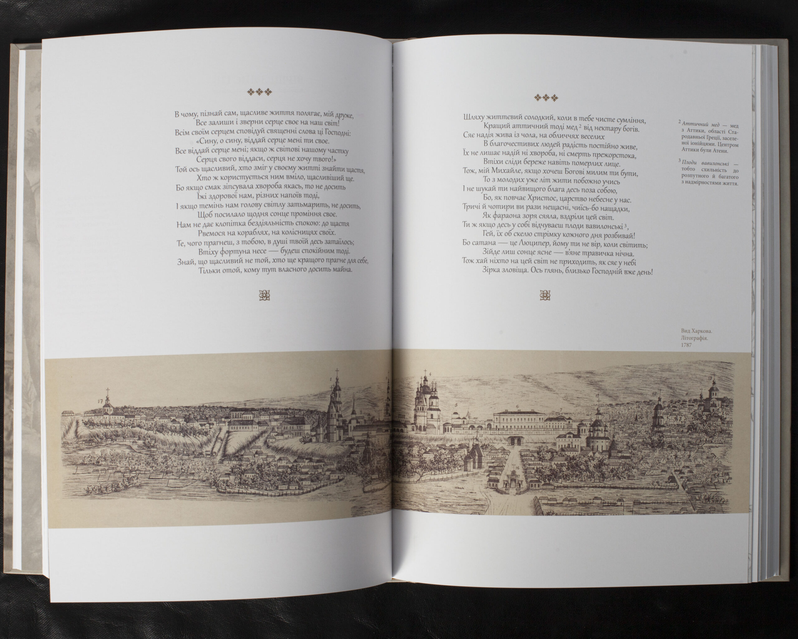 Унікальне видання, що вперше представляє повний корпус художніх творів Григорія Сковороди в сучасному українському перекладі Валерія Шевчука. Книга містить не лише поетичні та прозові твори, але й ретельно відібрані афоризми з різних текстів філософа, літературознавчий аналіз творчої спадщини та біографію, написану учнем Сковороди М. Ковалинським. Особливістю видання є збереження оригінальної структури силабічного вірша з цезурами та ілюстративний матеріал, що відображає мистецьке світобачення XVIII ст.